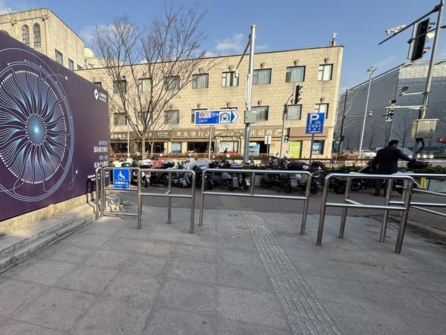 有没有其他的路线?记者在周边走了一圈发现,在搭乘扶手电梯出来的1号口,虽然也设置了路桩,但预留了一处无障碍通道。只要手动拉开门拴就能打开,宽度约105厘米。据地铁工作人员称,此处无障碍通道门拴不会上锁,随时可开启。李女士之所以没有发现,可能是因为廊道的走向产生了视线遮挡,且周边没有足够的标识提示。