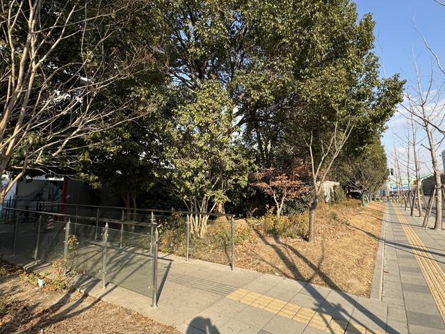 无障碍电梯口连着一条直通的下坡道,可来到迎宾一路上街沿的人行步道。