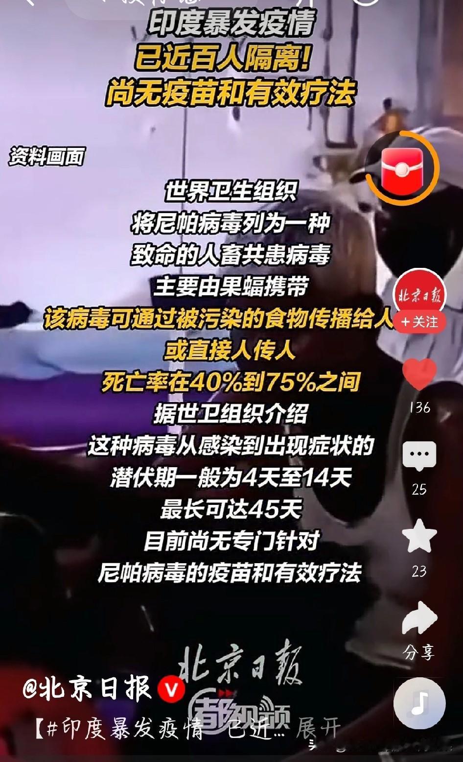 印度尼帕病毒人传人实锤!邻国全岗戒备太有必要 刚刷到印度尼帕疫情确认人传人,瞬间心头一紧!这病毒太狠了,病死率40%-75%还没疫苗特效药,初期症状像感冒极易误诊,密接飞沫就能传,印度医护都集体中招。 果蝠是天然宿主,沾了它分泌物的水果、椰枣汁都能染病,现在人传人更是把防控难度拉满。尼泊尔、泰国这些邻国立马封边境、空港全筛查,新加坡马来西亚也重启防疫机制,这波操作太及时! 病毒无国界,咱普通人也得警惕,别吃生椰枣汁、远离野味,出门做好防护。希望各国守住防线,别让疫情扩散! 印度尼帕疫情或人传人 邻国加强防范 印度尼帕疫情人传人 尼帕病毒邻国严防 公共卫生安全预警 印度病 印度疾病 图片截图于网络
