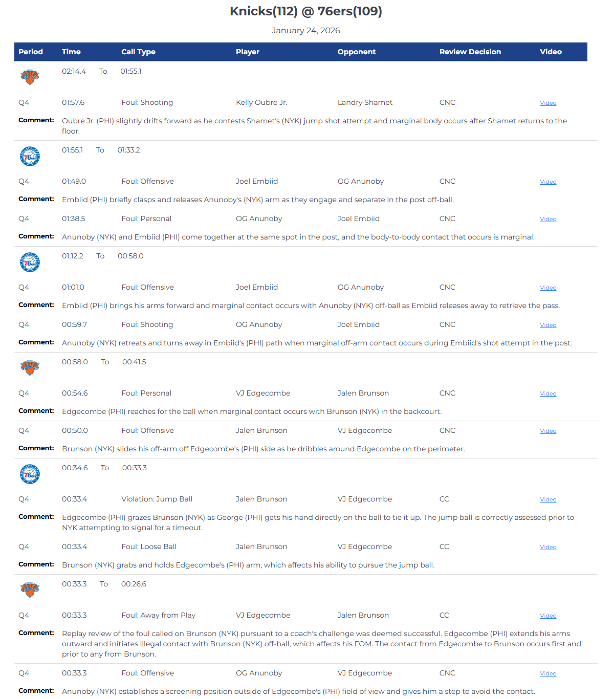 虎扑01月26日讯昨日NBA常规赛:76人以109-112不敌尼克斯。