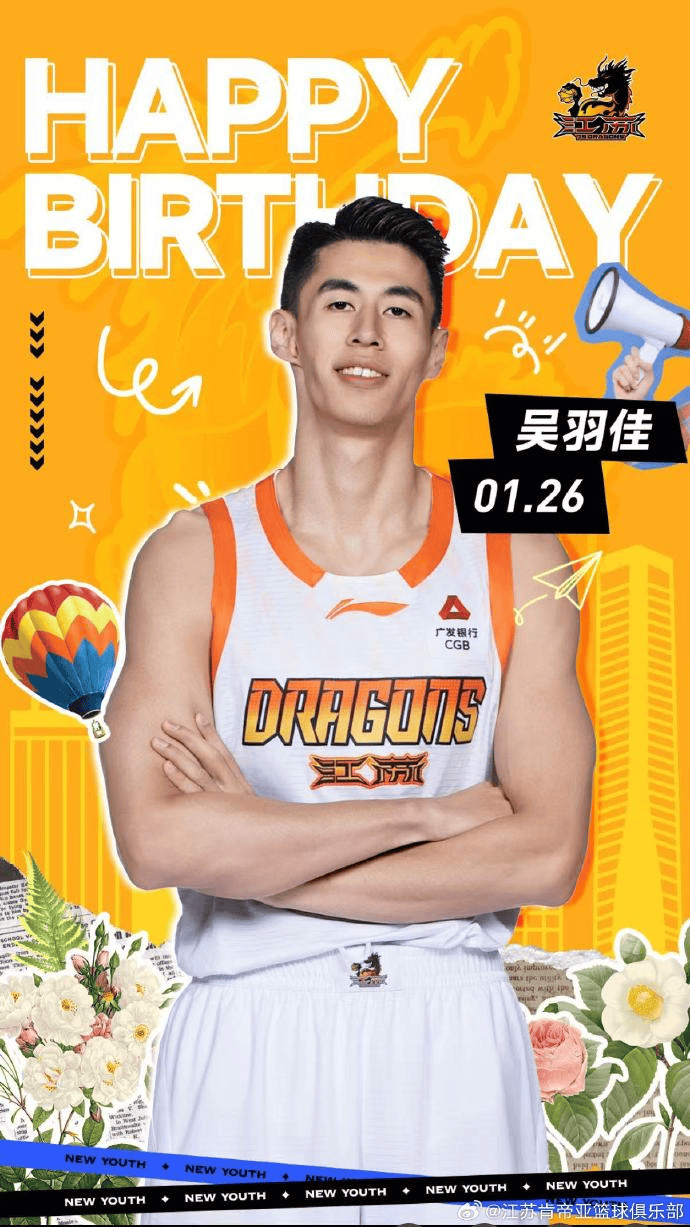 江苏男篮官方分享生日海报:祝队长吴羽佳生日快乐