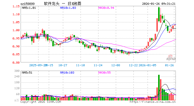 1月26日,软件龙头ETF(159899)开盘涨0.19%,报1.029元。软件龙头ETF(159899)重仓股方面,科大讯飞开盘涨1.62%,金山办公涨1.71%,同花顺跌0.90%,指南针跌0.97%,恒生电子涨0.15%,拓维信息跌0.24%,润和软件跌0.69%,三六零涨0.00%,深信服涨5.30%。