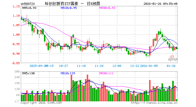 1月26日,科创创新药ETF国泰(589720)开盘涨0.32%,报0.933元。科创创新药ETF国泰(589720)重仓股方面,百济神州开盘涨0.00%,艾力斯涨0.04%,百利天恒跌0.14%,君实生物涨2.18%,泽璟制药跌0.13%,博瑞医药涨0.06%,荣昌生物跌0.75%,特宝生物涨0.17%,益方生物涨0.00%,皓元医药跌0.93%。