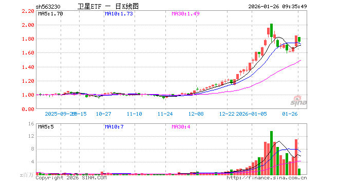 卫星ETF(563230)业绩比较基准为中证卫星产业指数收益率,管理人为富国基金管理有限公司,基金经理为曹璐迪、殷钦怡,成立(2025-09-04)以来回报为81.97%,近一个月回报为57.44%。