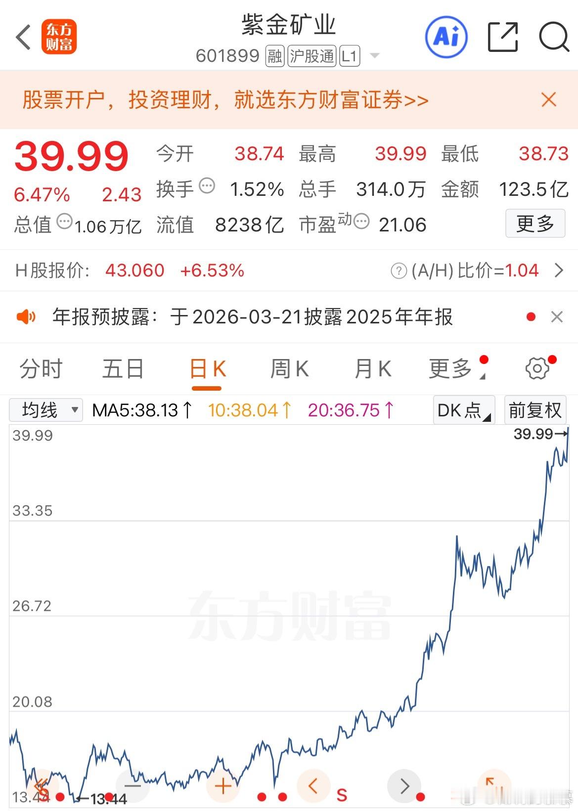 $紫金矿业 sh601899$ 历史天量,历史高位,紫金不仅是铜矿股,更是拥有金