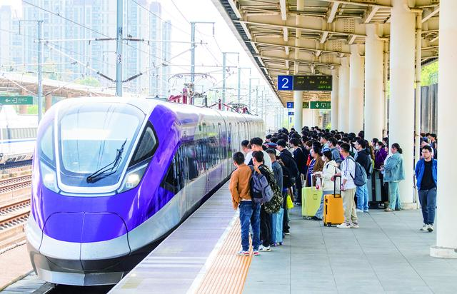 2024年1月24日,“新城快线”正式启航。两年来,全线累计开行列车26332列;发送旅客突破370.9万人次,日均客流量稳定在5200人次,上座率常年保持70%以上,节假日单日最高峰值达1.83万人次。“刷码即走、不定席位”的地铁化便捷模式,让“新城快线乘车码”小程序注册用户超110万。