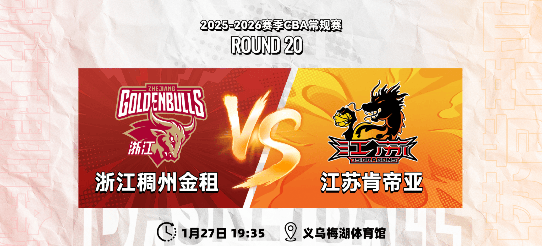 虎扑01月26日讯明日CBA常规赛,江苏男篮将对阵浙江男篮。