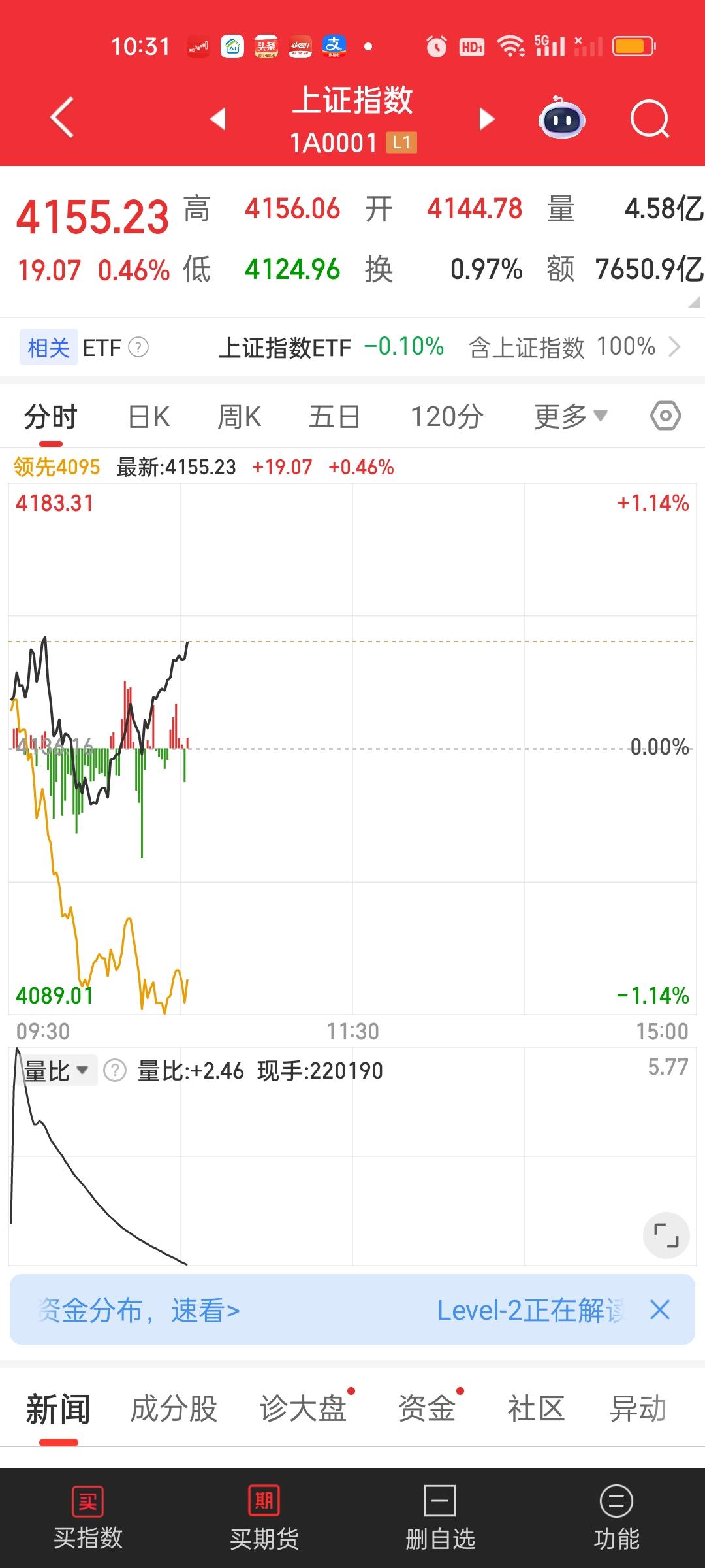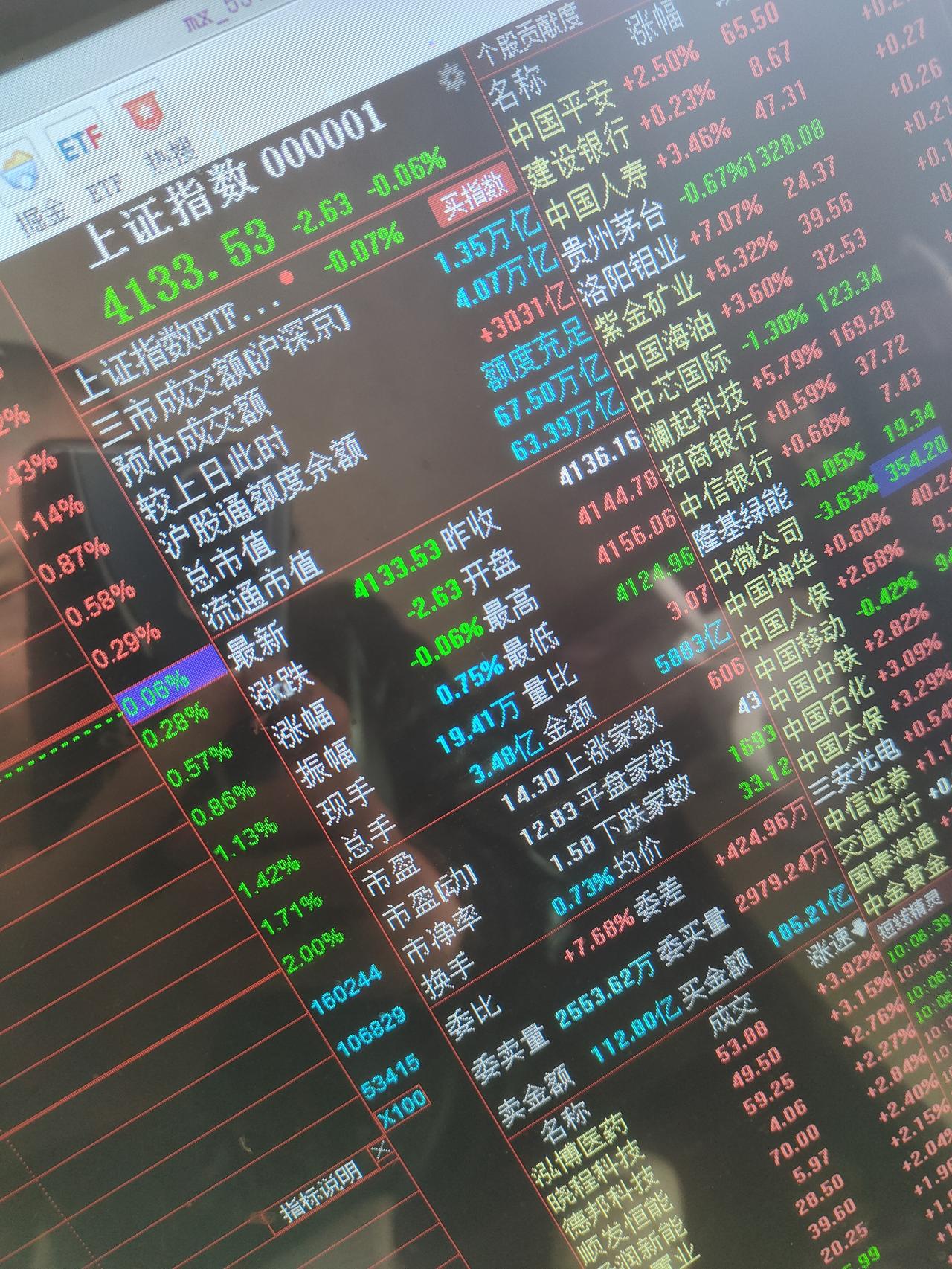今天出现了很多奇观,让人忍不住叹为观止。第一,成交量放了巨量,一个小时不到放量了4000亿,预估全天成交量可以破40700亿。创造36年来的成交量历史记录。第二,全市场超过4000家个股下跌。指数反而是大涨的,银行,保险,券商居然同时发力了,真是养兵千日用兵一时。第三,大盘资金净流出超过了800亿。