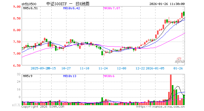 1月26日,截止午间收盘,中证500ETF(510500)跌1.47%,报8.591元,成交额90.99亿元。中证500ETF(510500)重仓股方面,英维克截止午盘涨0.35%,信维通信跌7.22%,巨人网络跌8.63%,航天电子跌6.39%,中矿资源跌0.93%,中国卫星跌9.11%,先导智能跌0.32%,卧龙电驱跌3.94%,赤峰黄金涨6.18%,兴业银锡涨10.00%。