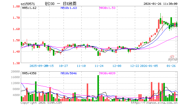 1月26日,截止午间收盘,创业板200ETF富国(159571)跌1.88%,报1.621元,成交额31.99万元。创业板200ETF富国(159571)重仓股方面,香农芯创截止午盘涨4.45%,天华新能跌2.33%,赛微电子跌4.76%,上海瀚讯跌8.25%,光库科技涨4.08%,鹏辉能源涨6.49%,汉得信息跌3.21%,星源材质跌2.95%,太辰光涨0.19%,四方精创跌3.79%。