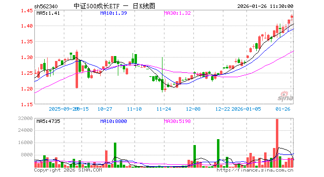 1月26日,截止午间收盘,中证500成长ETF(562340)涨0.85%,报1.430元,成交额83.69万元。中证500成长ETF(562340)重仓股方面,巨人网络截止午盘跌8.63%,西部矿业涨9.61%,天山铝业涨1.67%,厦门钨业涨6.92%,通富微电跌7.03%,宏发股份跌2.88%,杰瑞股份涨2.38%,睿创微纳涨0.86%,豪迈科技跌0.38%,金诚信涨1.45%。