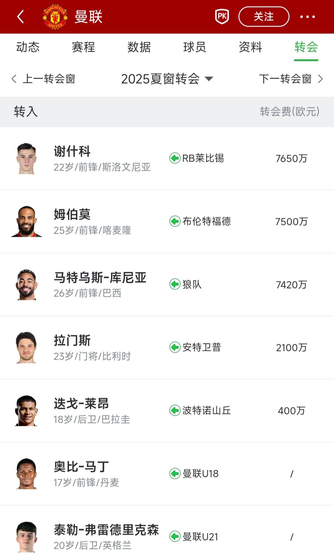讲道理有钱真好,曼联前锋全是去年夏天买的。 姆贝乌莫是大腿。 库尼亚今天绝杀