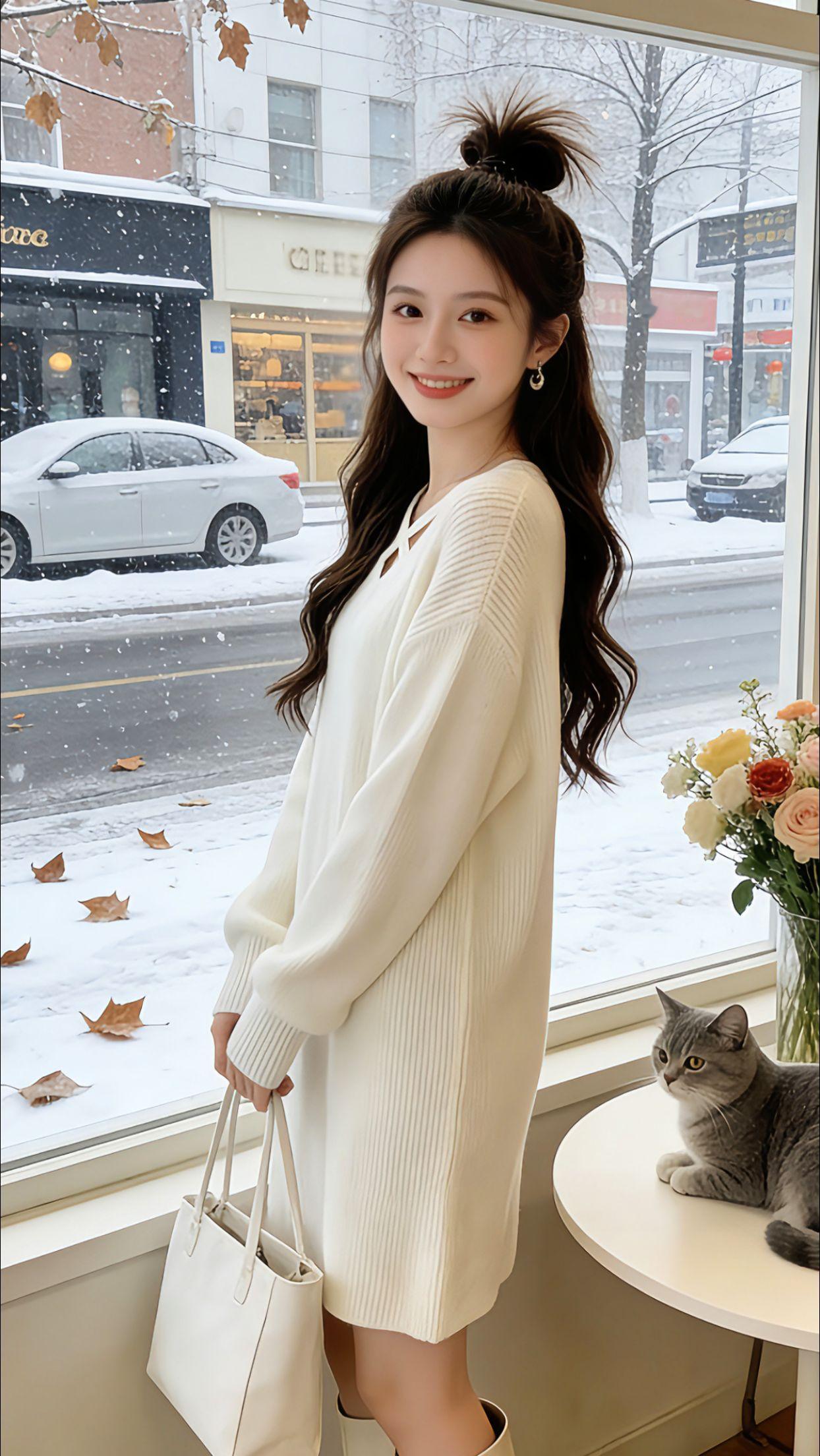 降温后被这件白色针织裙狠狠拿捏!Danny上身的2026新款毛衣裙,V领交叉设计带点小精致,软糯针织贴身穿很舒服。小个子穿刚好露脚踝,配大衣或单穿都温柔,下雪天撸狗、逛店拍照都超有氛围感~ 宽松版型藏肉不挑身材,日常通勤或约会穿都适配。米白色调自带温柔滤镜,冬日里的一抹治愈感,喜欢温柔风的姐妹别错过,搭配长靴就很出彩! 温柔穿搭 白色针织连衣裙 气质女神穿搭 脱下外套也体面的秋冬内搭