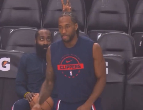 赛后,美媒Fullcourtpass更新了动态:“詹姆斯-哈登在热身时给科怀-伦纳德比划了兔耳朵。”