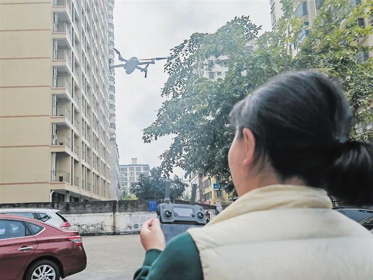 1月13日,海口市琼山区一名女士操作个人无人机起飞中。高凌摄
