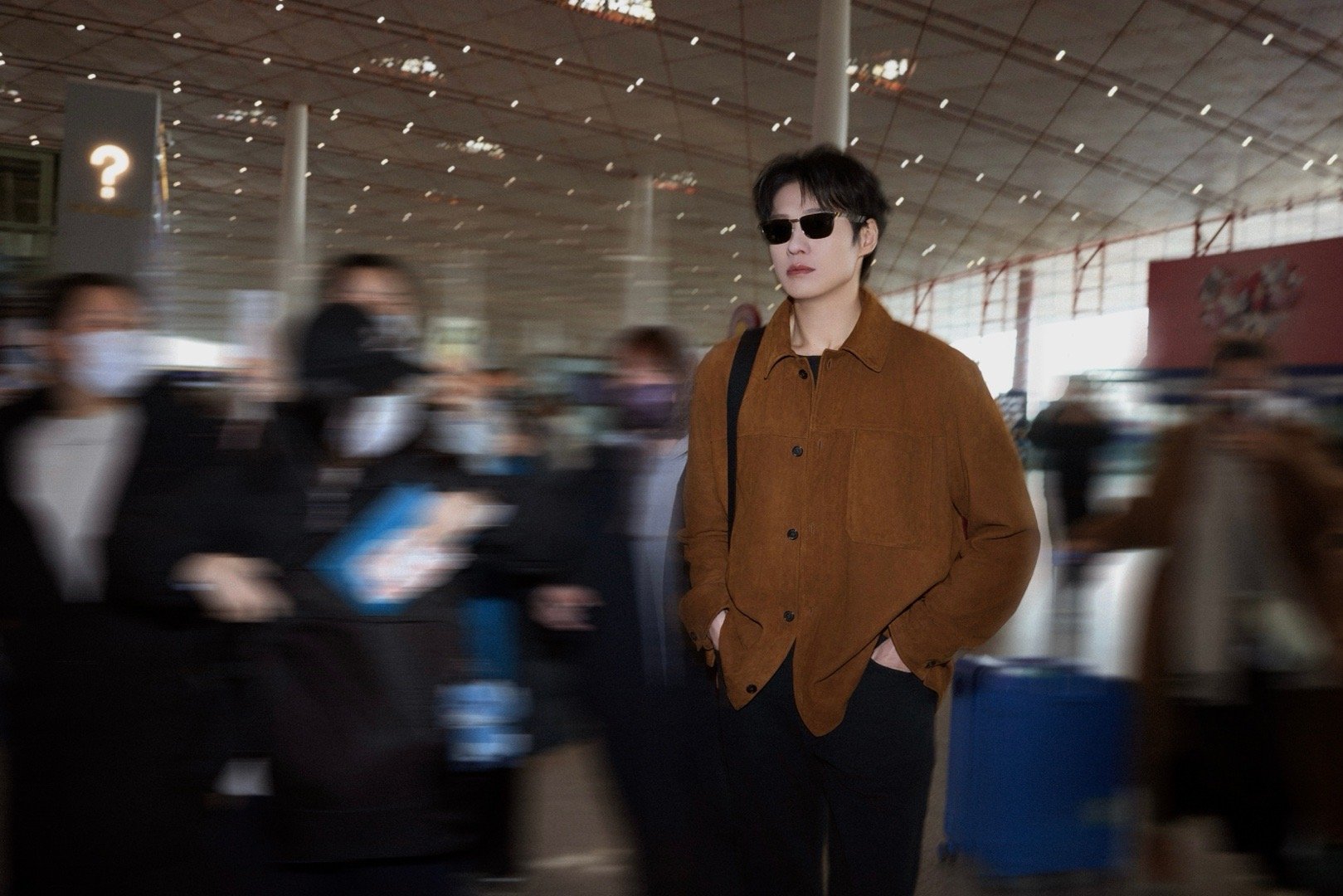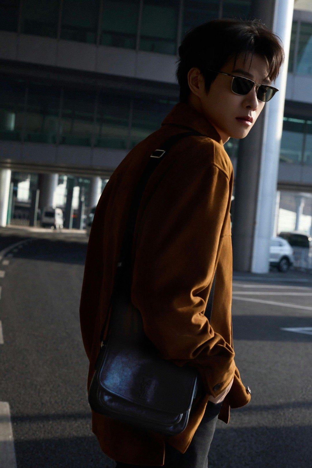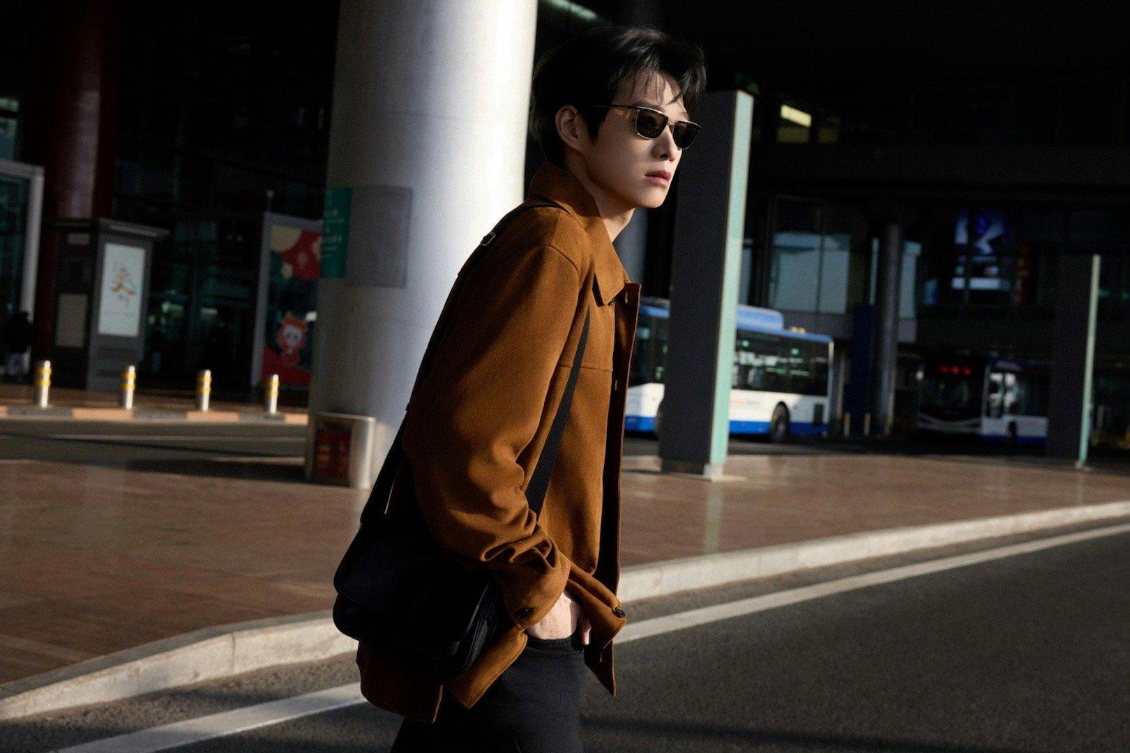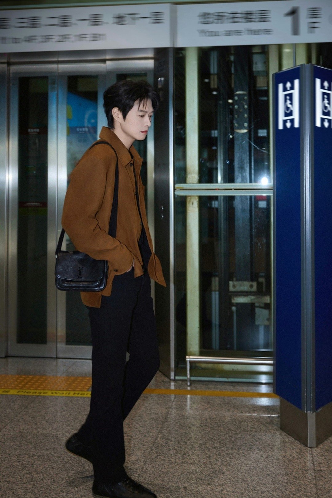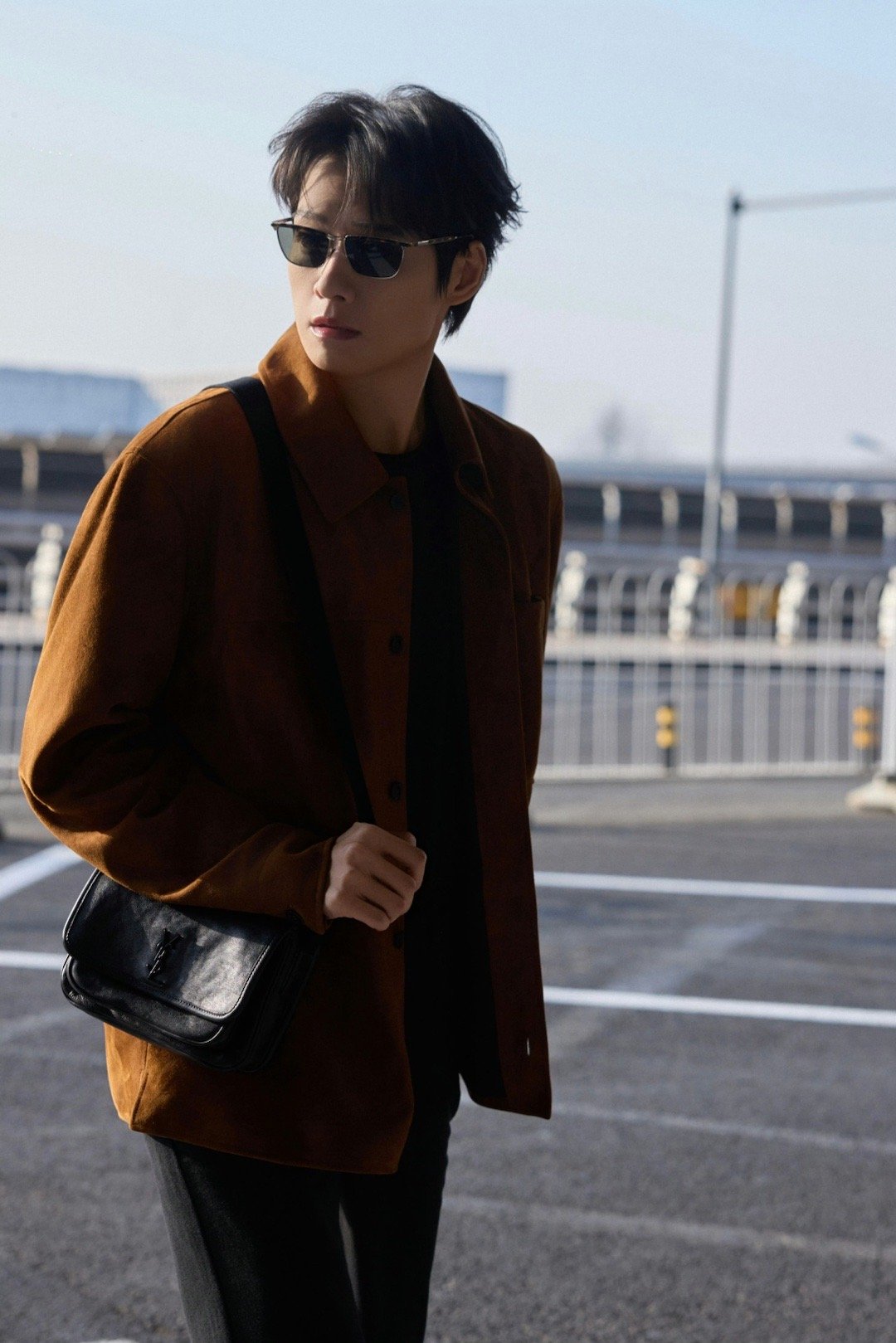 男装周 魏大勋启程前往巴黎准备观看Saint Laurent 2026 秋冬男装大秀,机场出发造型走的是轻松休闲路线,简约又不失质感。焦糖棕麂皮绒衬衫,内搭的黑色上衣和长裤,营造出了丰富的视觉层次,凸显了魏大勋清瘦、挺拔的身材优势。巴黎男装周