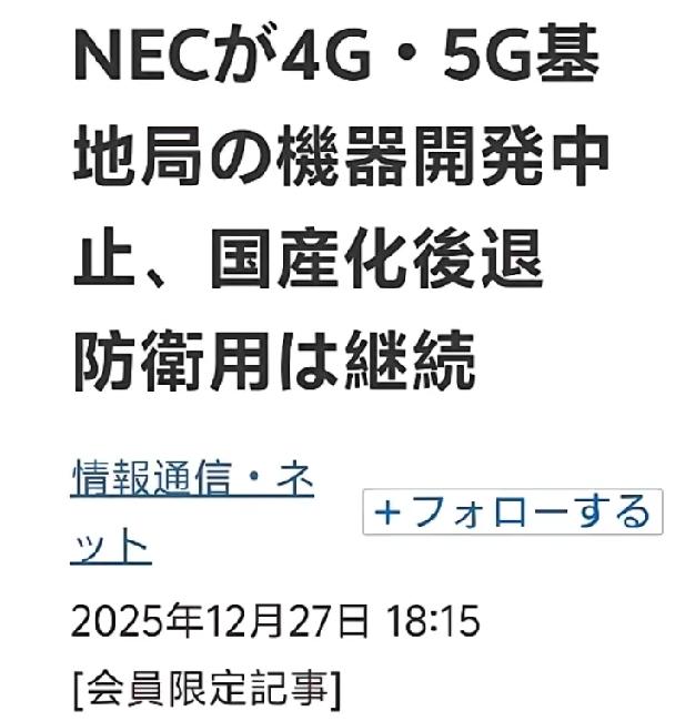 日本NEC宣布退出4G和5G公共基站开发市场,这可太有看头了。想当年2020年,NEC还和NTT合作,新野隆社长信誓旦旦要2030年全球份额达20%,结果四年就败下阵来。 从市场数据看,华为、爱立信、诺基亚掌控近80%的基站份额,NEC和富士通加起来不足2%。这背后其实是日本通信设备产业缺乏“全球化规模运营”能力。5G时代,出货量带动研发,研发稳固份额,NEC没跟上这节奏。而且不只是NEC,富士通剥离业务,京瓷没涉足,曾经3G能和欧美抗衡的日本厂商,如今集体溃败,韩媒感慨全线溃败也不奇怪。