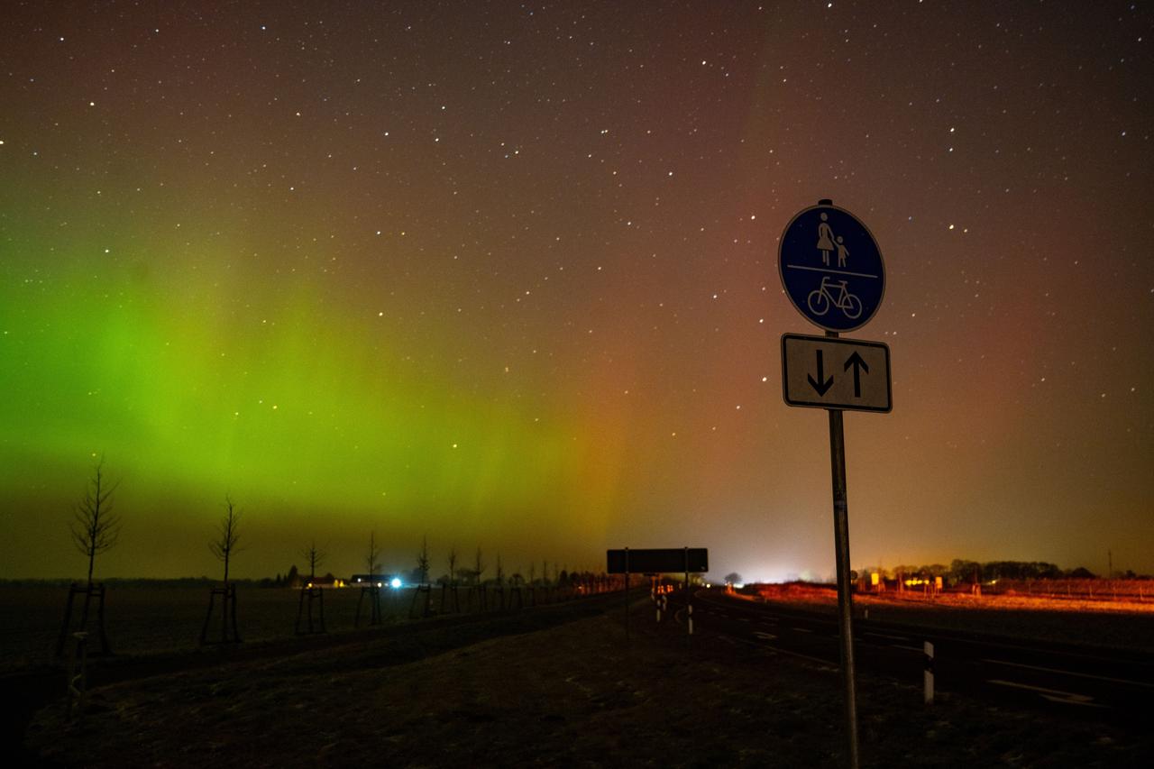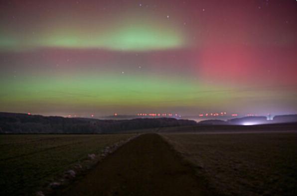 上周,德国多地出现了罕见而迷人的自然奇观——北极光。夜空被点亮,染成了绿色、红色和紫色的绚丽色彩。极光的形成源于太阳带电粒子与地球磁场的相互作用,在高空大气中释放能量并发光。由于近期太阳活动增强,这种通常只在高纬度地区才能见的现象,在德国甚至用肉眼就能看到。因为在德国看到北极光的机会极为罕见,这次观测显得格外珍贵,许多人都用相机记录下了这美丽的瞬间。