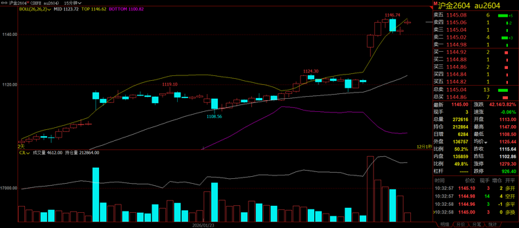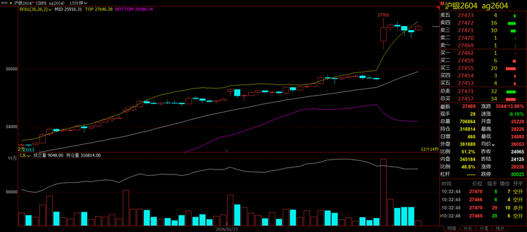 1月26日,贵金属市场迎来了历史性的爆发时刻,现货白银日内涨幅超过5%,触及每盎司108.53美元的纪录新高,沪银主力合约更是暴涨14.00%,报价攀升至27280元/千克。与此同时,现货黄金日内暴涨100.53美元,最新报5086.66美元/盎司,涨幅2.02%。现货铂金上涨逾3%,创下每盎司2862.25美元的纪录新高。现货钯金亦涨超3.4%,最高至每盎司2086.45美元。