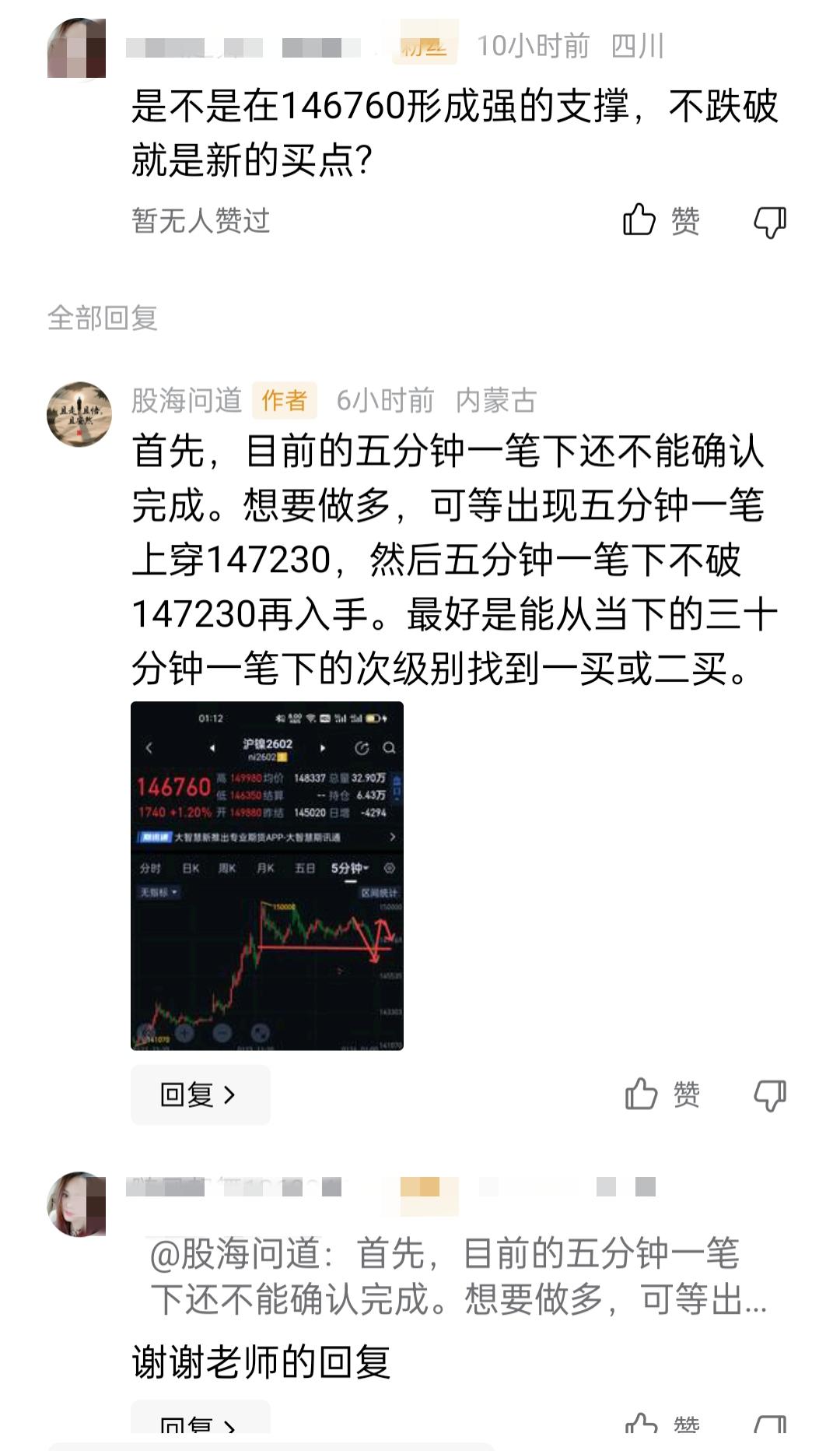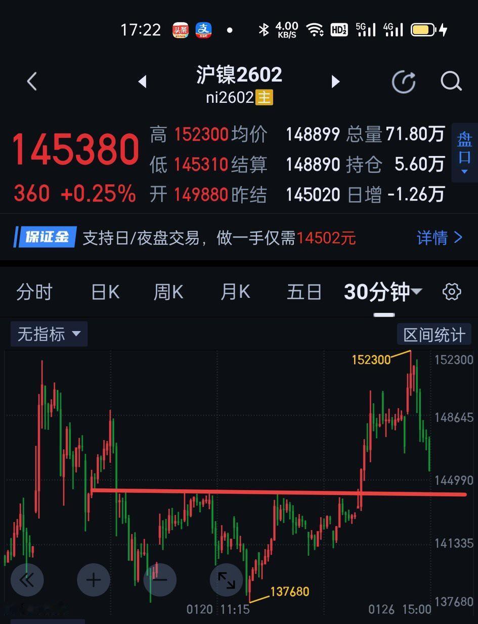 沪镍2602,周一创出近几日新高后冲高回落,导致日内的五分钟一笔的上涨昙花一现。目前的五分钟一笔下仍在生长中。夜盘147740能否站稳是关键。站稳,五分钟一笔下结束,后面走势暂用图〈1〉一分钟中枢震荡的视角跟随。147740如不能有效收复,五分钟一笔下将继续生长,后市就要看144000附近的支撑了。市场投资一定不要带有个人色彩,要摒弃主观思维,每一次操作前设定好节奏,制定好纪律,才能做到进退自如。文武之道,一张一弛。