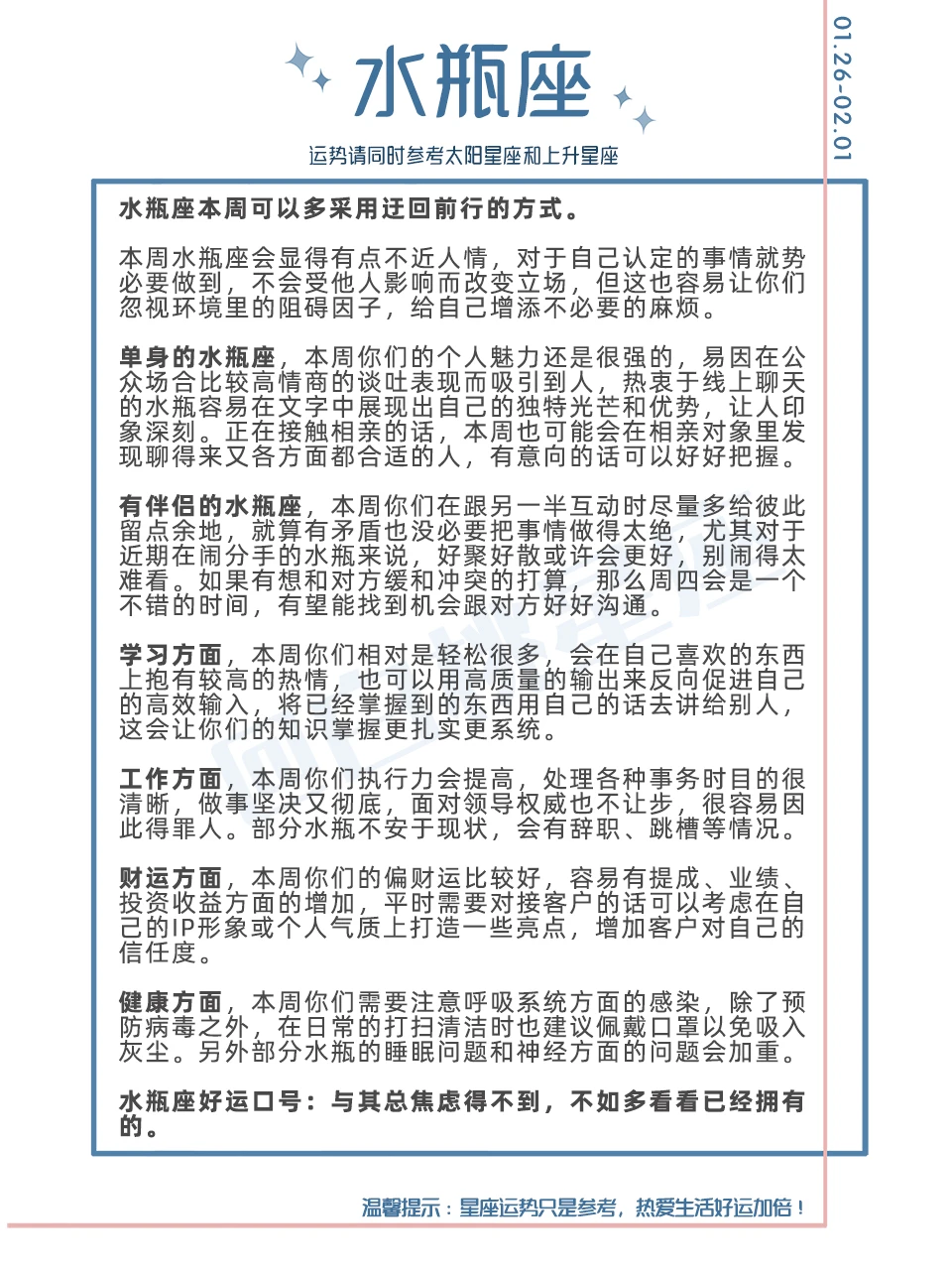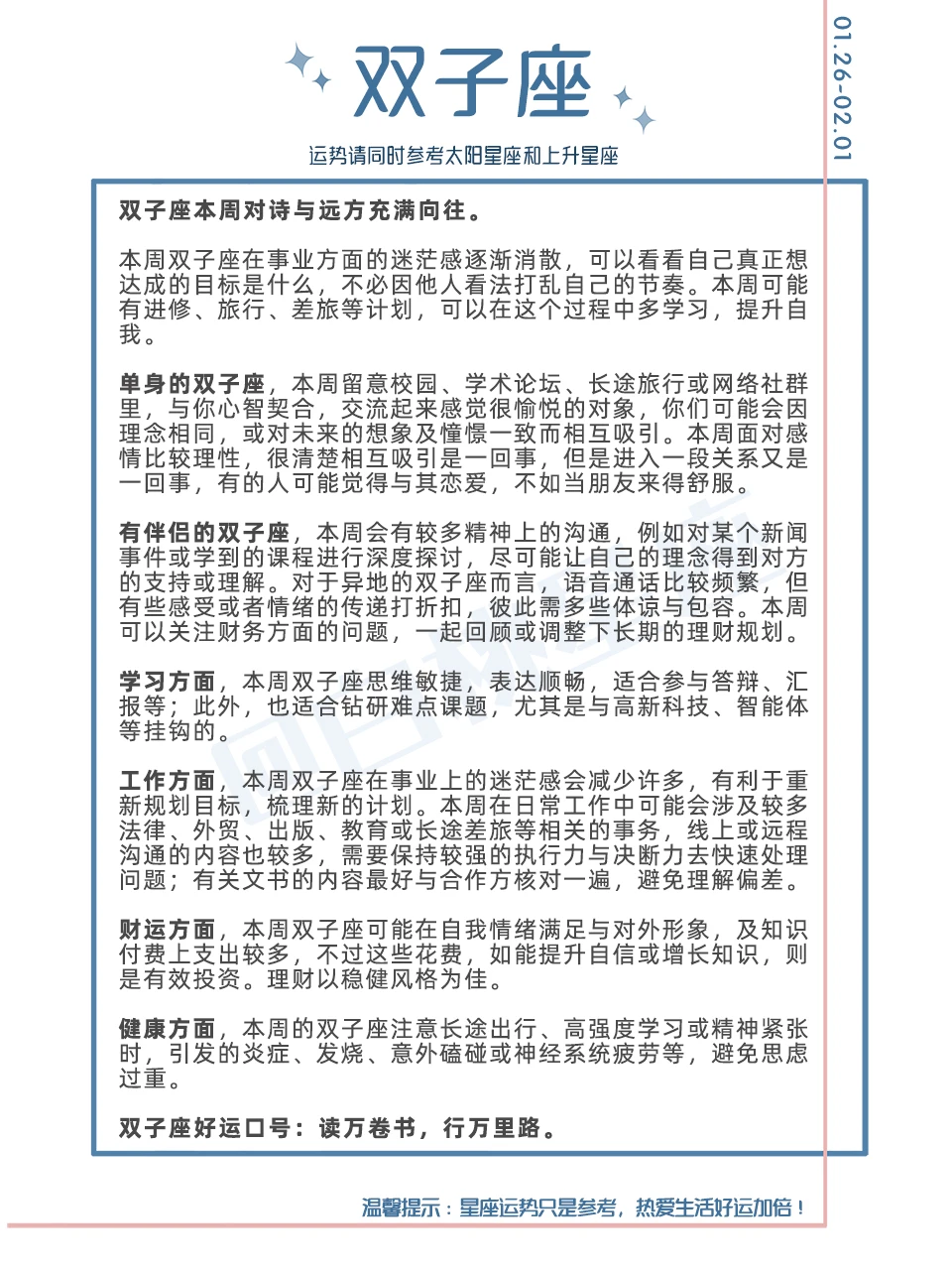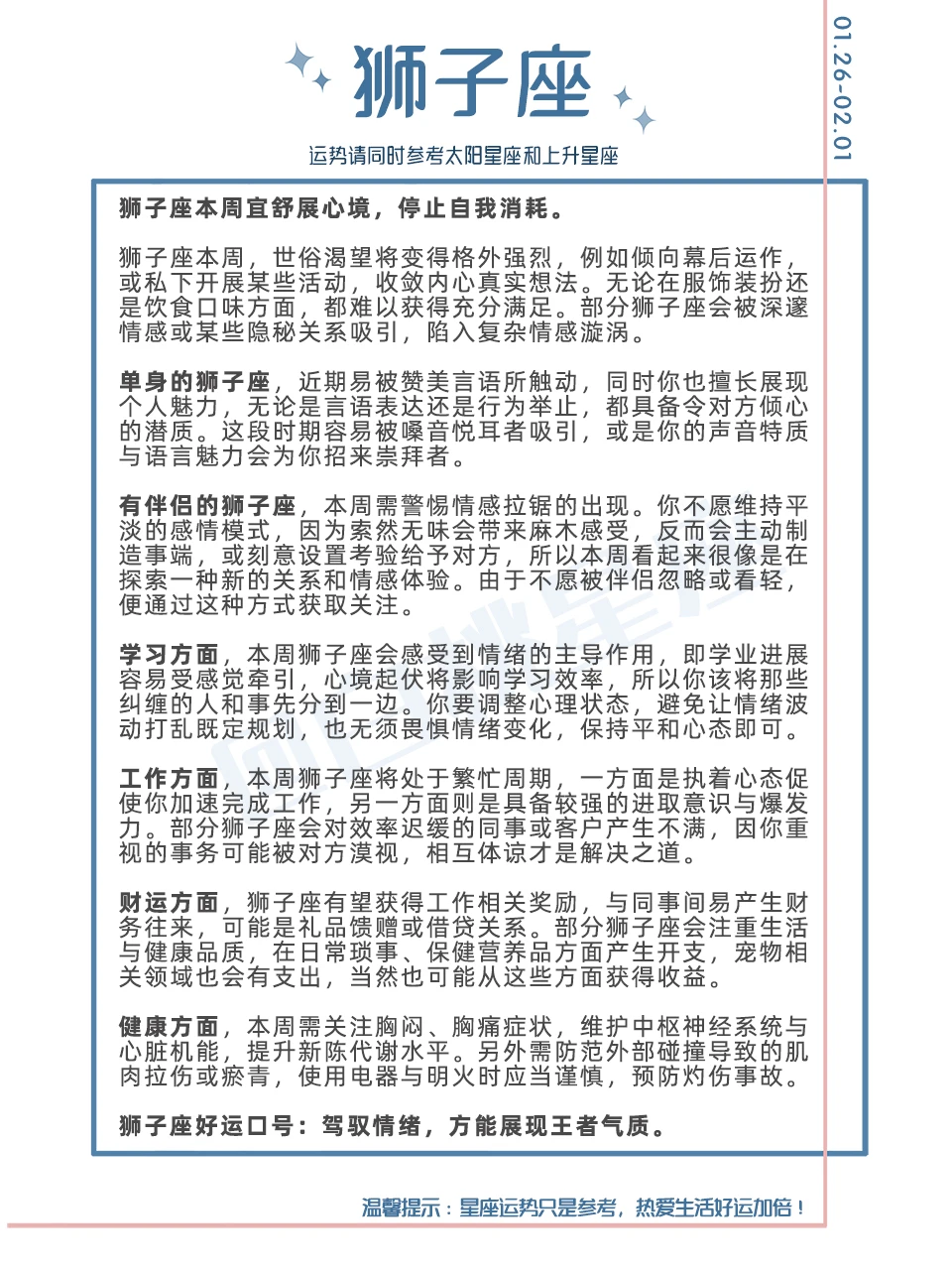 温馨提示:星座运势只是参考,热爱生活好运加倍!