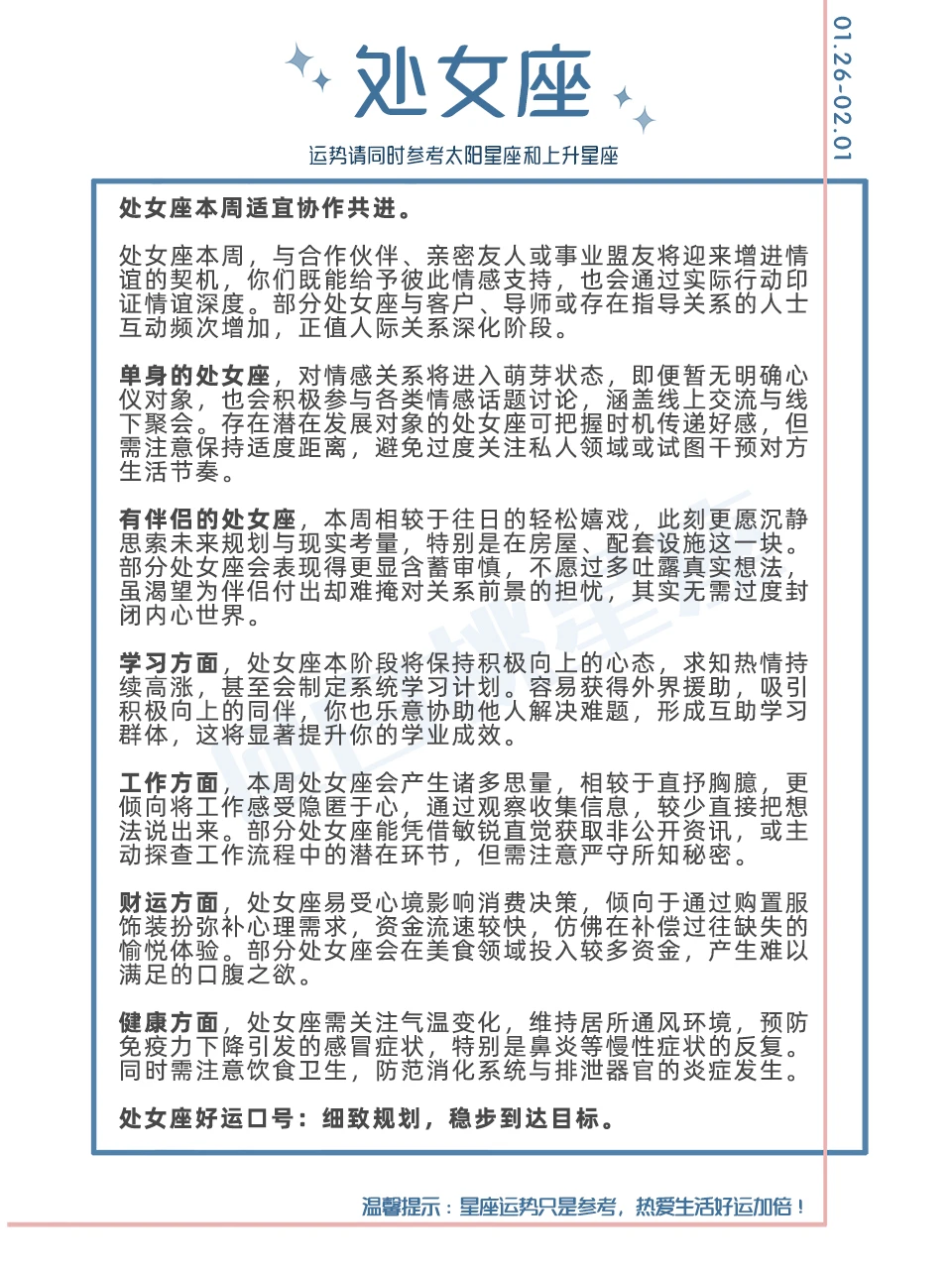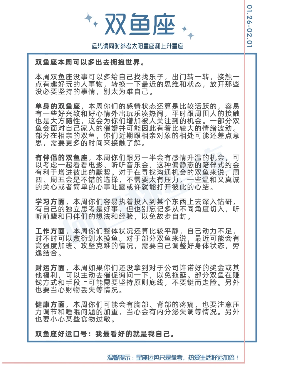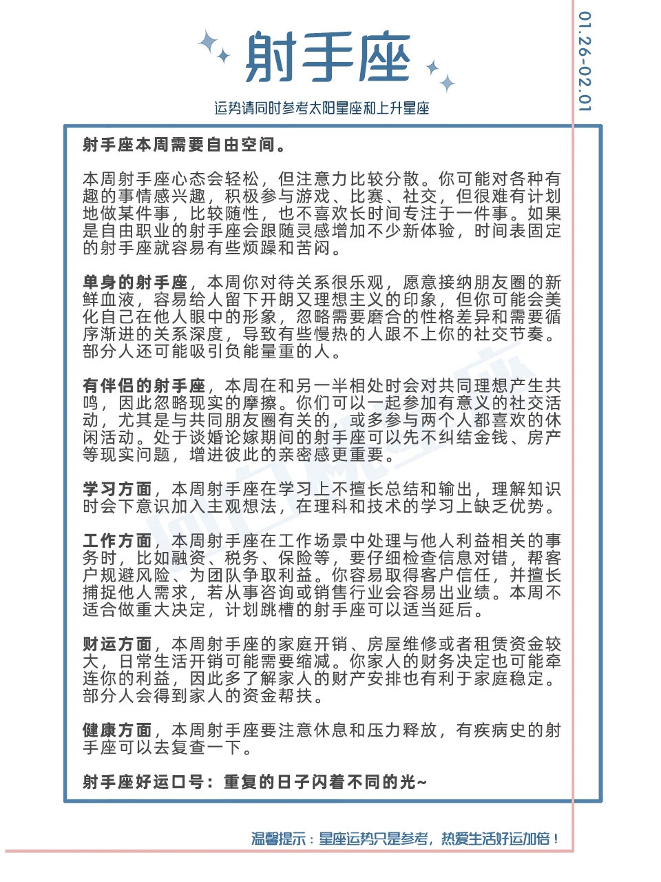 温馨提示:星座运势只是参考,热爱生活好运加倍!