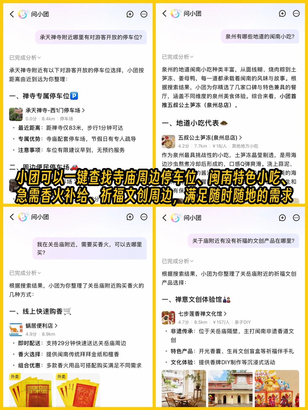 想找寺庙附近停车位、地道闽南小吃,或急需香火补给