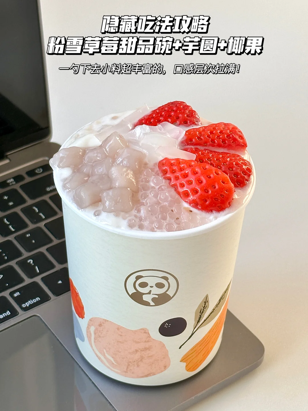 粉雪草莓这碗是少冰清爽口的,重点是能舀着吃的草莓甜品!🍓