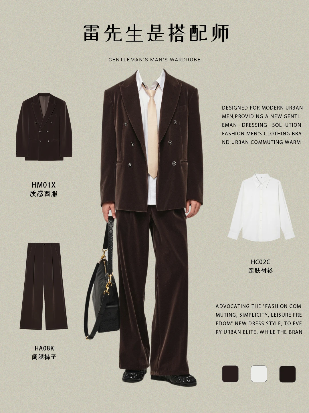 LOOK 1:摩卡棕丝绒——复古电影男主