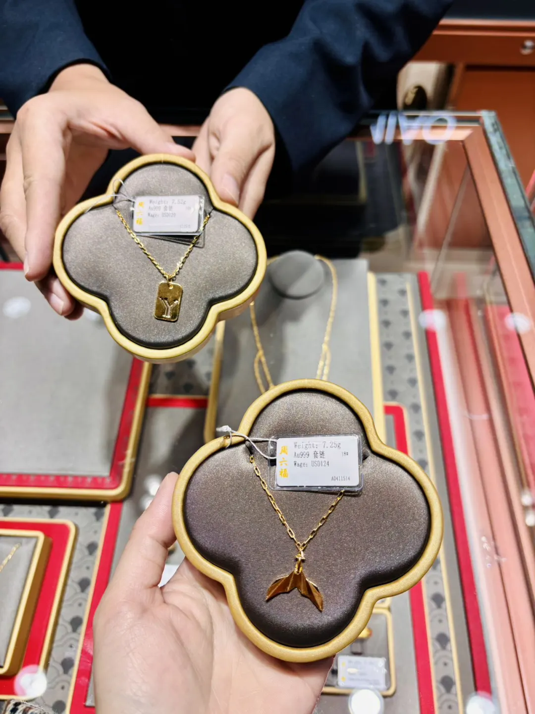 店里超多黄金新款,黄景瑜同款系列简直让我爱惨啦~特别是小鲸鱼尾锁骨链,简洁大气,真是什么风格的衣服都可以轻松hold住,戴上超时髦!