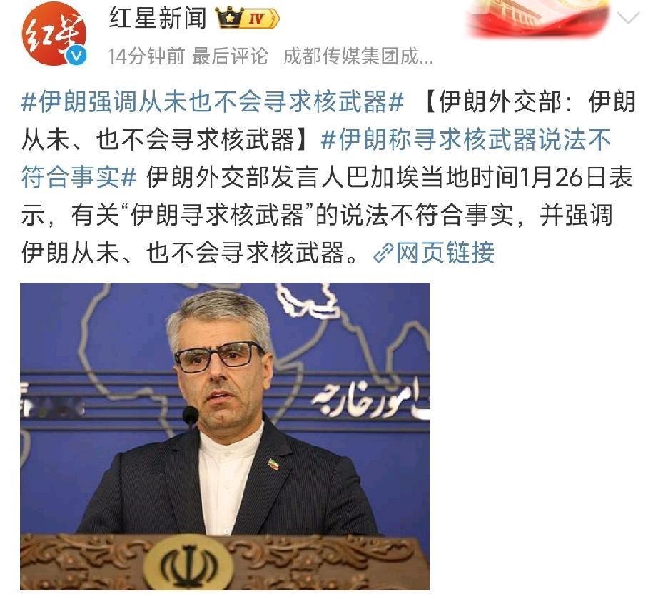 憋了好几天,伊朗来了一句: “不寻求核武器!” 伊朗今天一改之前的强硬宣战口