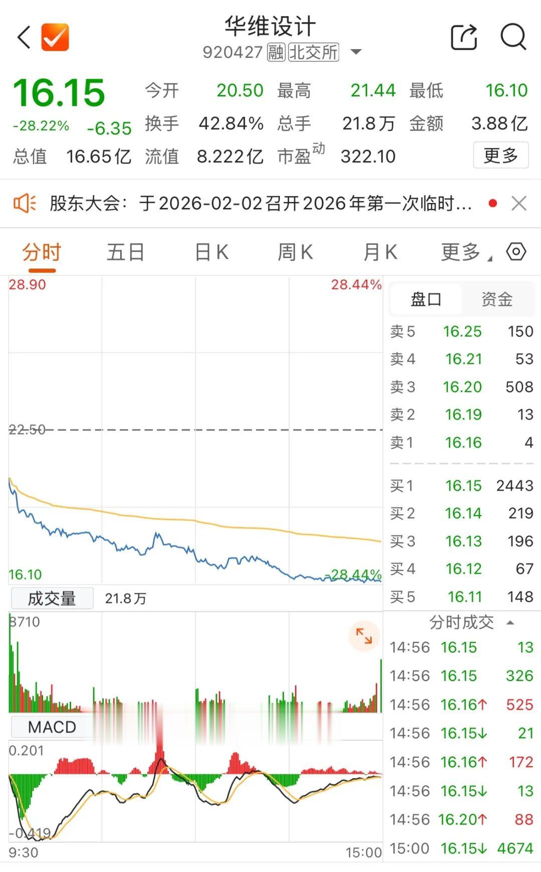 1月26日,华维设计开盘跌超8%,截至收盘,该股票跌幅达28.22%。