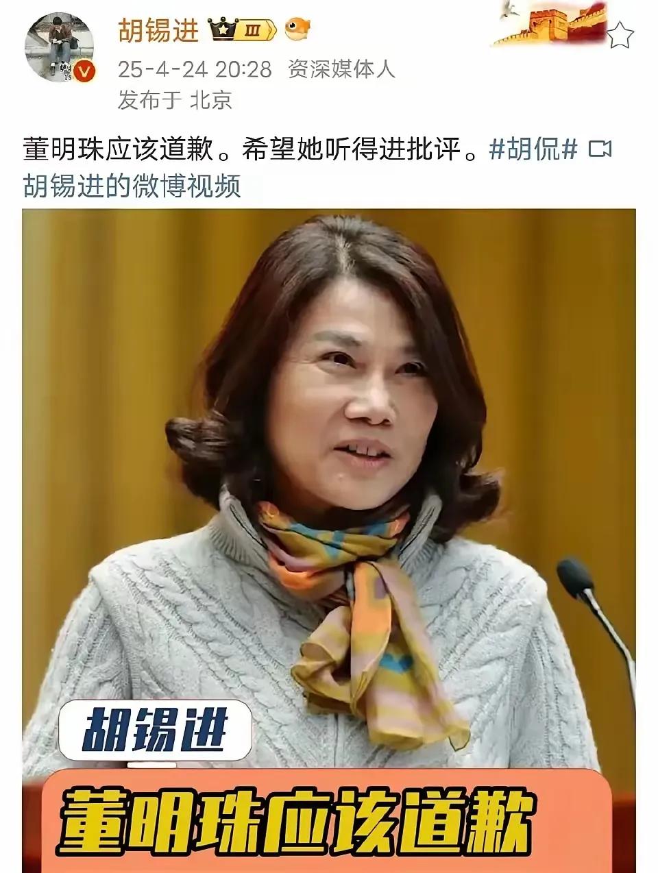 胡锡进竟然拒不认错,反而一口咬定“某名人说了错话不道歉”,这是怎么回事呢? 原来胡锡进一直不肯谈论“斩杀线”,被网友逼急之后,老胡抛出所谓的“沉默权”,企图蒙混过关。 没想到网友举出董明珠的例子,去年董明珠因为不敢录用留学生的言论,而被胡锡进口诛笔伐,老胡还公开要求董明珠必须道歉。可见胡锡进对于“沉默权”玩双标,体现了老胡一贯的“严于律人,宽以待己”。 但是许多人站在董明珠这边,而不是站在胡锡进这边。强烈要求胡锡进必须向董明珠道歉!而不是董明珠向胡锡进道歉!