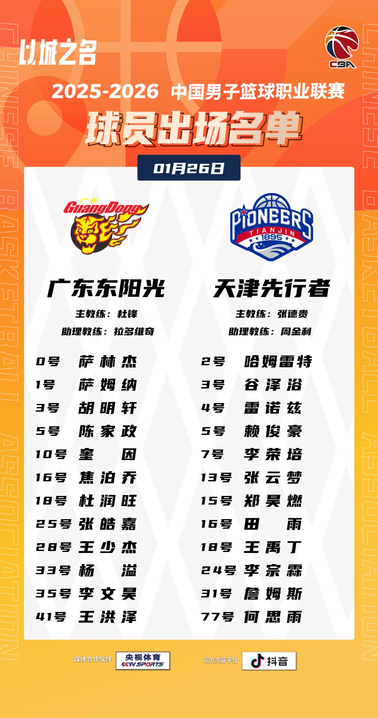 【大名单出炉】2025-2026赛季CBA联赛常规赛第二十轮今晚开打,3场比赛将在19:35同时跳球,敬请期待!