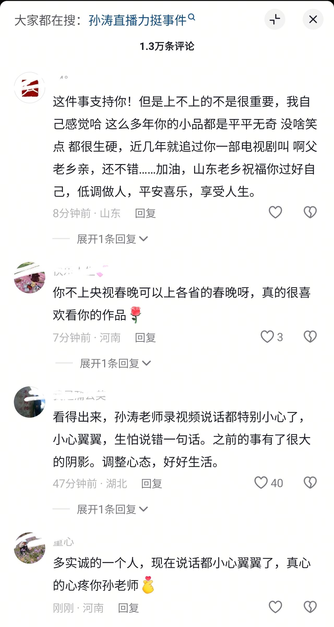 就因为营销号瞎编的“力挺闫学晶”谣言,就因为一群人跟风骂,他就要把守了二十多年的舞台拱手让人?这也太怂了吧! 明明直播录屏铁证如山,他一个字没提过闫学晶,结果就被营销号泼脏水,连亲朋好友都被误导来质问。 澄清视频里他头发花白、眼含热泪的样子,看着就让人揪心——但揪心归揪心,更气的是他居然选择了退圈,而不是硬刚到底! 说他小品尴尬的,我就想问:哪个演员能二十多年保持高水准? 就算套路化,那也是一代人的春晚记忆! “我骄傲”这三个字,谁没跟着喊过?凭啥要被一群鸡蛋里挑骨头的人否定所有付出? 孙涛你给我听着!别怂! 营销号造谣就告他们诽谤,网友瞎骂就晒证据打脸!守了这么多年的舞台,凭啥要让给那些看热闹的人?硬刚啊!
