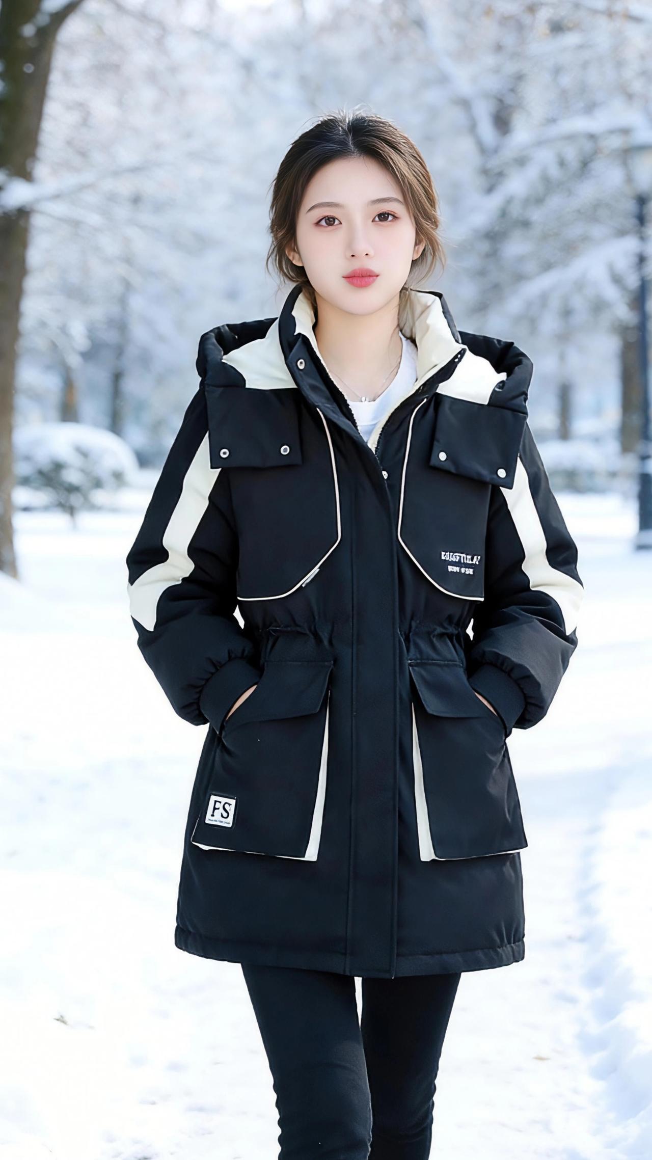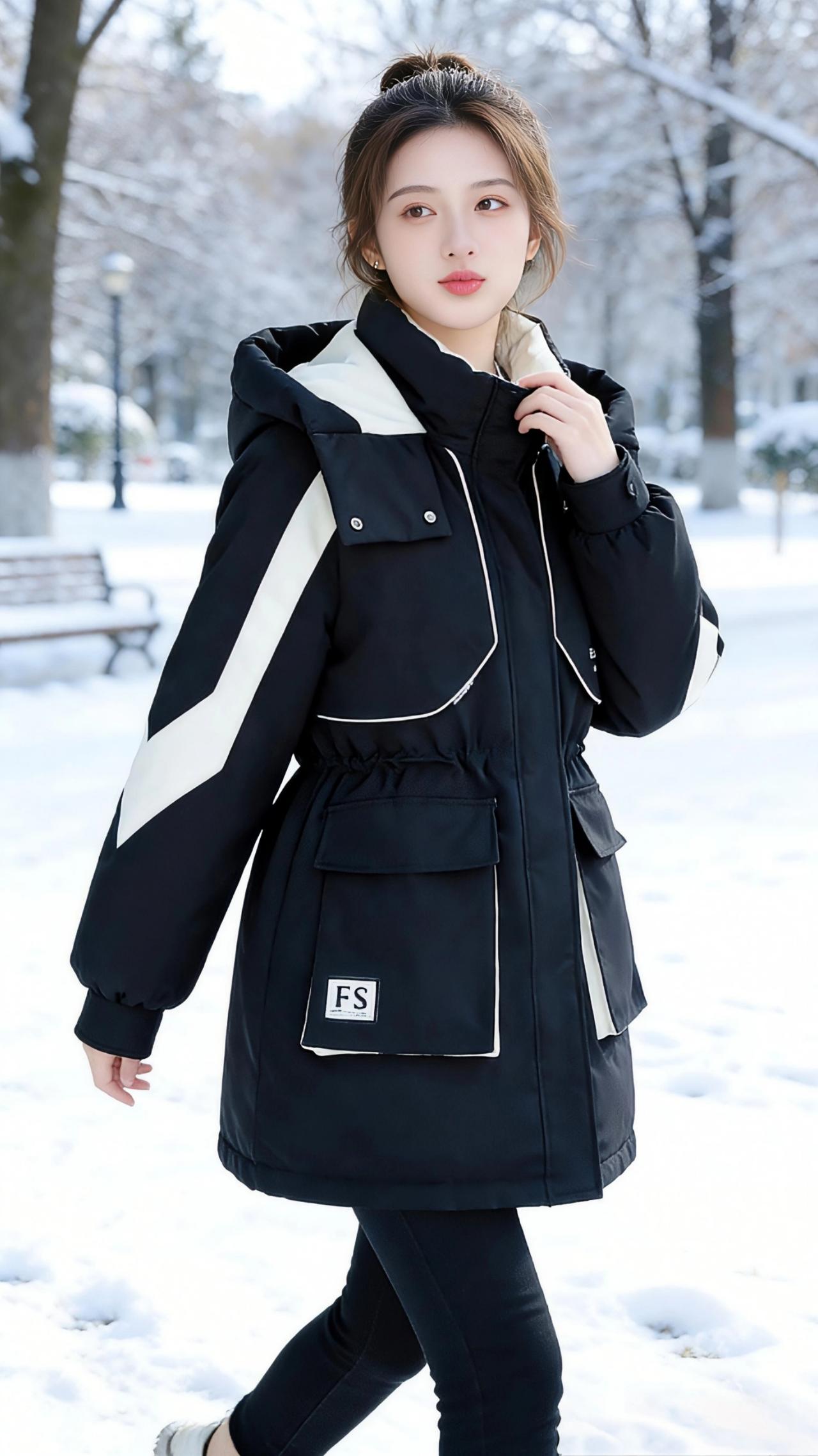 雪色里的黑白暖调 雪落满了枝桠,天地间只剩干净的白,我裹紧身上的黑白拼色派克棉服,任风掠过衣摆。 利落的黑色面料上,米白的线条像几笔温柔的批注,从肩线延伸到袖口,在冷冽里划出柔和的弧度。腰间的抽绳轻轻收束,让蓬松的棉服多了几分利落,大口袋足以揣进半掌暖手,也装得下雪天里细碎的欢喜。 踩着积雪往前走,靴底碾出轻响,棉服的暖意从领口漫到后背。我转身时,衣摆扫过雪地,黑白撞色在素净里格外鲜活。后来我捧着热咖啡站在树下,指尖透过杯壁传来温烫,棉服的绒毛领蹭着耳尖,是雪天最妥帖的温柔。 回到室内对着镜子自拍,暖黄灯光里,黑白面料泛着细腻的光。原来最冷的日子,一件妥帖的棉服,就足以把风雪都隔在门外,把温暖都揣进怀里。 高级感穿搭 冬季穿搭 新年穿搭 棉衣棉服