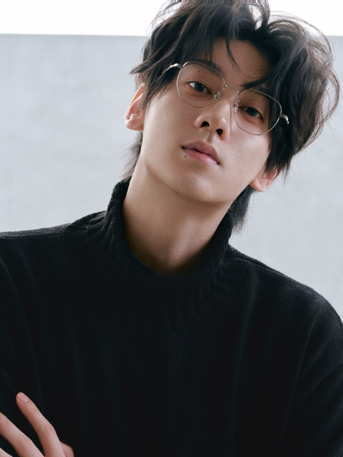 田栩宁黑色紧身毛衣金丝眼镜营业,腊八节快乐