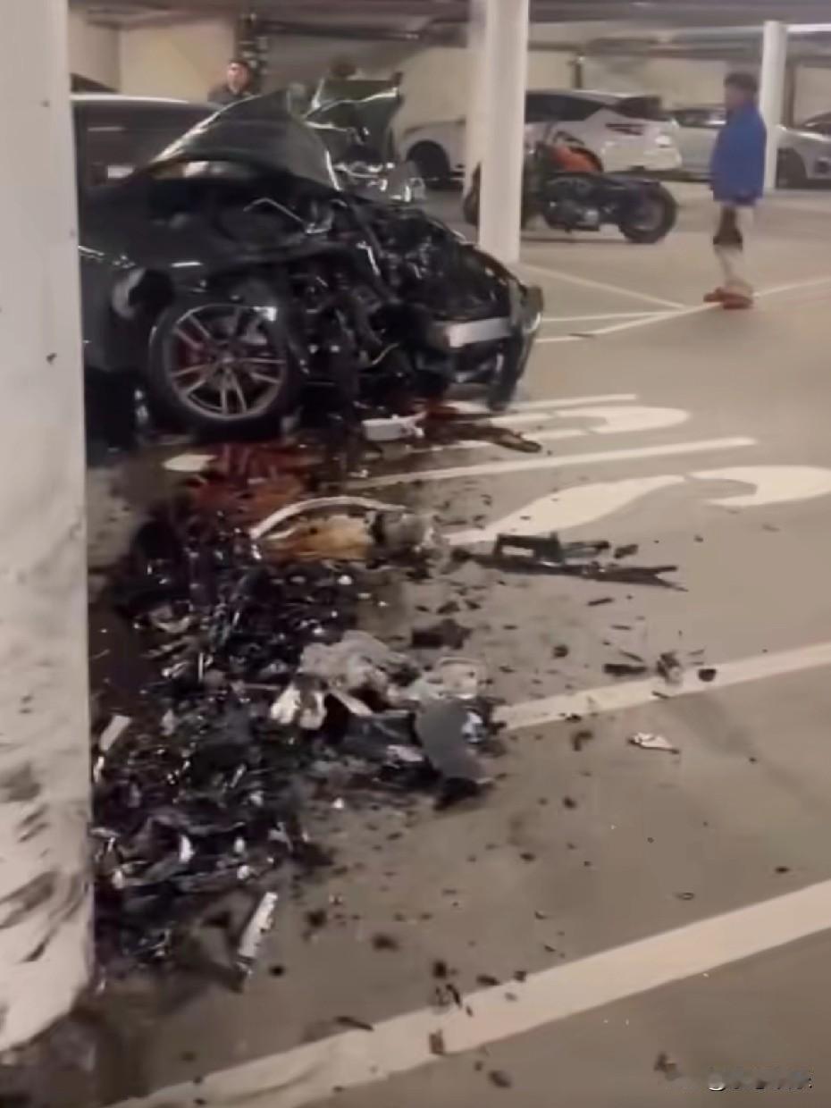 炸锅了!这啥车撞成这样,机器都撞烂了,估计人也凶多吉少,地上全是血。 在地下车库还能开成这样,车技也太猛了,可能司机当时着急办事,一脚油门没控制住。 现场老惨烈了,车子零部件七零八落,扔得到处都是。