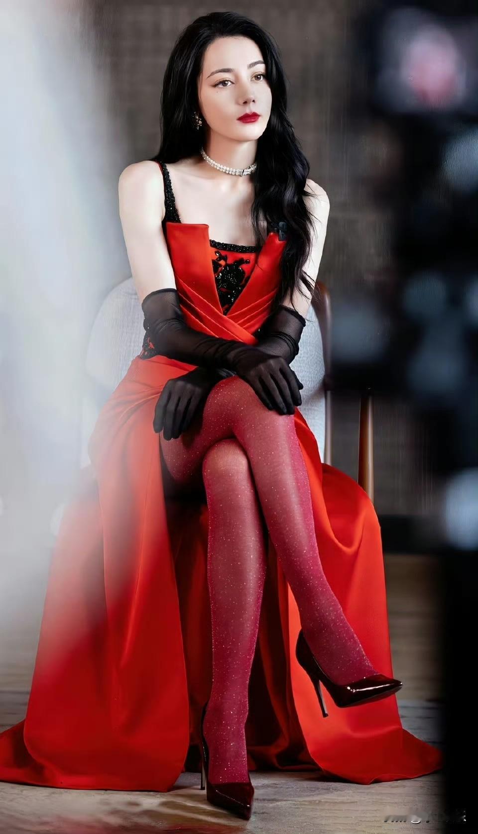 迪丽热巴这造型绝了!红色银丝裙衬得她大长腿格外吸睛,和酒红漆面细高跟搭配起来,特