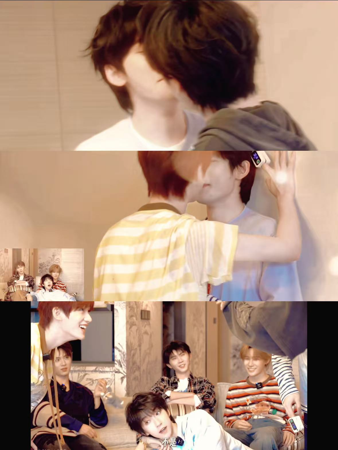 时团真不把我们当外人 时团你们是有点太敢了!浅炸里张真源隔着纸巾亲马嘉祺那下,我手机差点甩飞!马哥直接弹起来的样子像被按了开关,旁边几个兄弟尖叫到破音,后面壁咚、用嘴传东西更是全程高能,这互动密度和黏糊劲儿,是真不把镜头放在眼里啊!果然七个人凑一起就没外人,我们就喜欢这种“没眼看又忍不住看”的快乐!