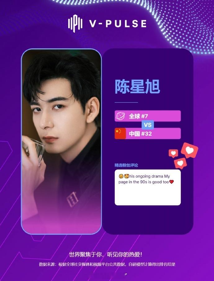 陈星旭全球热度上升至华语艺人国际排行榜TOP7 ,有效播剧了