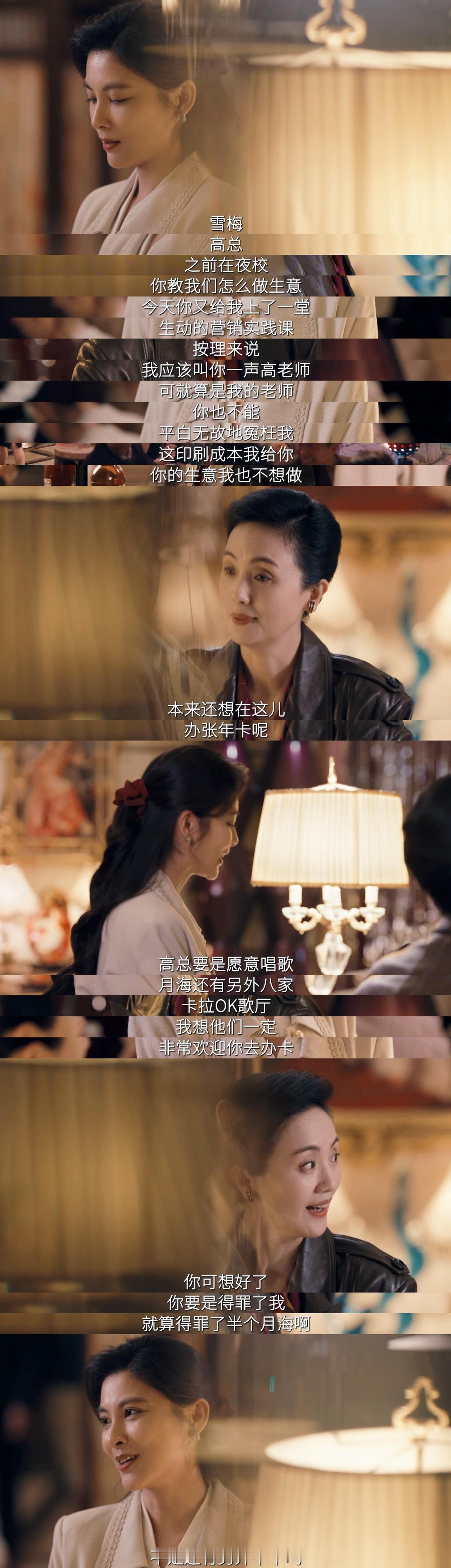 小城大事 我的评分:小城大事大结局 孙小燕的卡拉ok厅,经历了好多终于走到选址开张这一步,回想来时路真的太了不起了。她一个女人敢闯敢干,心心念念的梦想,眼看就要实现了。可偏偏这时候,周遭出现了一些不堪的闲言碎语..老解帮小燕解决开店租金的问题,被人恶意揣测、添油加醋地传到雪梅耳中,这段真的很讽刺。强势能干的雪梅,要被嚼舌根;一心搞事业、想法超前的小燕,不过是追梦也要被造谣。明明都是在认真生活、奋力打拼的女性,却要无端承受这些指指点点,看得人满心揪痛。误会发酵使得小燕的卡拉ok厅门庭冷落,就在困境当头,一群人拿着传单涌到门口,问是不是“凭单免费唱歌”。小燕虽然疑惑,却依然沉稳应对,一边让员工招呼大家进去,一边暗自思忖。当听到传单是从“大狗茶餐厅”来的,她心里就猜到了七八分。接着雪梅走了进来,小燕下意识以为她是来“挑事”的,于是不卑不亢地表明态度:如果真要对立,她也自有她的阵地和办法。但没想到雪梅是专程来道歉的,她自费印传单带大家来小燕歌舞厅消费,就是想要告诉大家这是个误会,希望大家不要因此不来歌厅,坦荡又实在地把围观的“戏台”拆了,把走偏的舆论扭了回来。雪梅还特地走上台道歉,当众向小燕郑重地说了“对不起”,并深深鞠了一躬💧因为她深知同为女性创业的百般不易,也珍惜这份并肩前行的底气和心气。在歌声与笑声里,所有的前嫌就此释然😭在我眼里,这两位女性都是格外的耀眼和优秀,雪梅直爽大气,错了便坦然承认,更用行动来弥补;小燕温柔坚韧,流言蜚语打不倒她,遇事从容不慌,用商业头脑消解困境。她们曾有过摩擦,但更懂得理解对方的不易与坚守,即使身处流言漩涡,依然愿意伸手托举对方。我私心希望她们前路顺遂,不被任何东西绊住手脚。我也始终坚信,她们一定能够做到。眼看小城大事快要接近尾声了,剧中每一个鲜活立体的角色都让人满心欢喜,好舍不得结束啊..我一定会二刷的这种真挚滚烫的、纯粹又有力量的女性情谊,无论重温多少遍,依旧能狠狠打动人心。小城大事