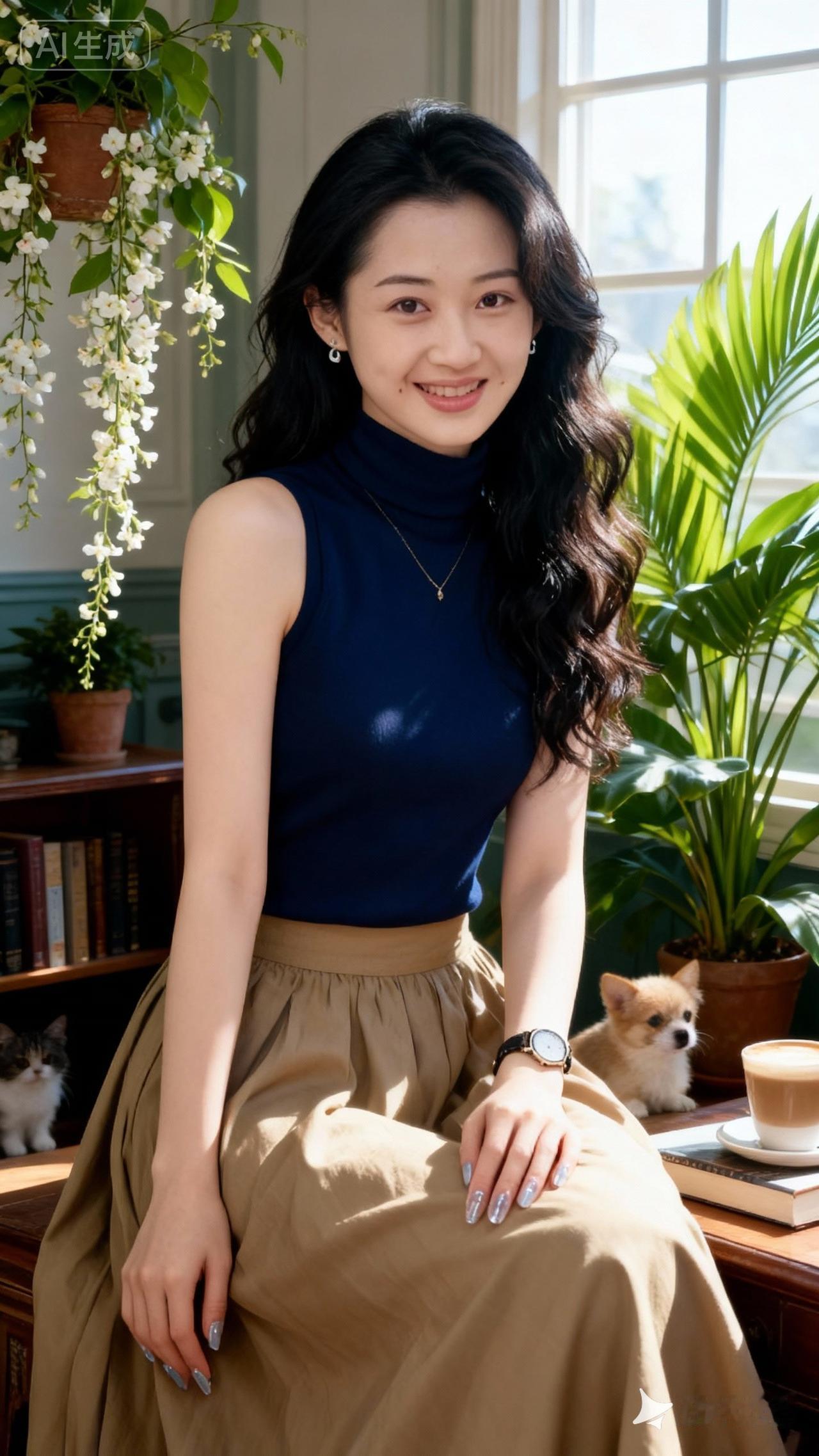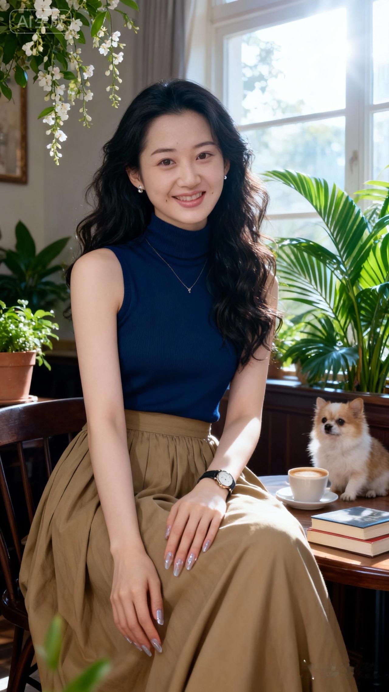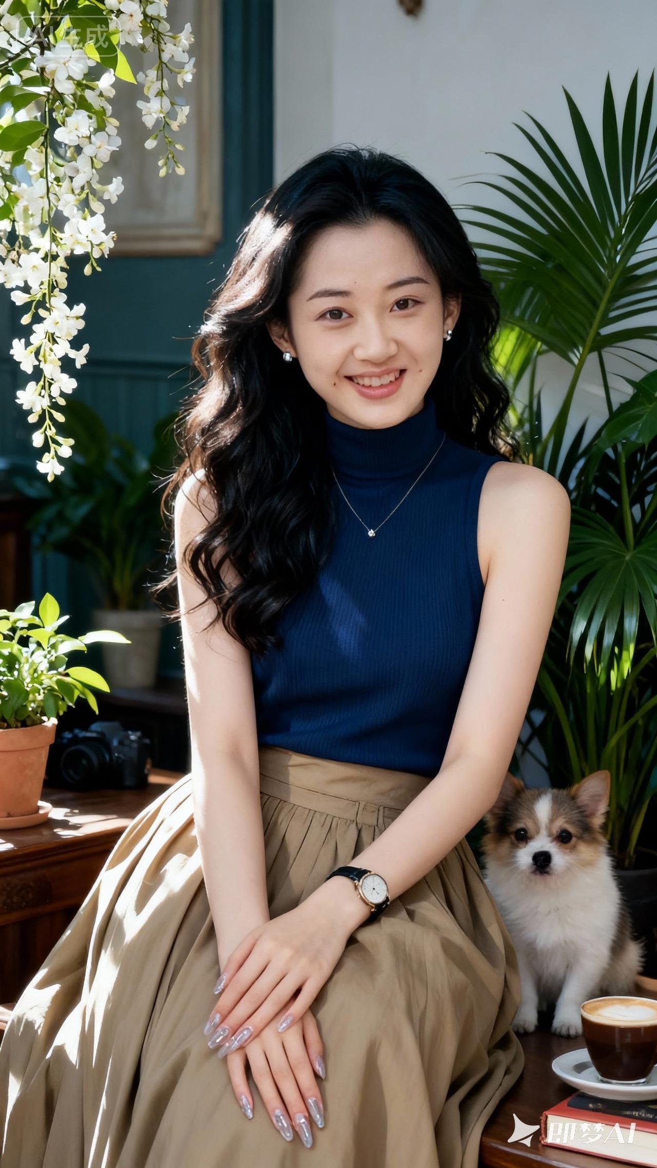 优雅咖啡馆时光,甜美微笑,萌宠相伴