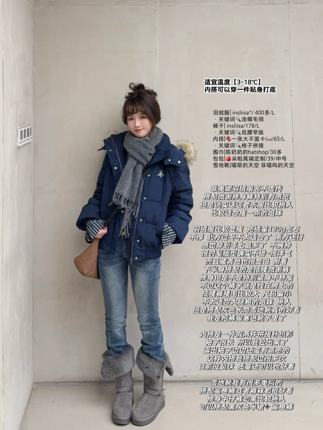168/104左右 【敞怀是为了展示内搭 有拉上拉链的图】 【仅提供穿搭思路 理性种草 天冷加衣注意保暖】 秋冬就穿菲奥娜穿搭(虽然喊了快两年了 第一次尝试) 我个人觉得好看好看但是挑人 确实很有古早感 时髦又吸睛~ 小个子可以大胆尝试 很显高显腿长 但是毕竟修身的裤子 对身材要求还是有的🥹 所以不是特别建议腿粗的姐妹尝试 不过羽绒服确实很显瘦 搭配普通的直筒阔腿裤也不错 后面再给大家解锁一下菲奥娜羽绒服的其他穿搭~ 不过目前来说官搭确实 有点东西哈哈哈