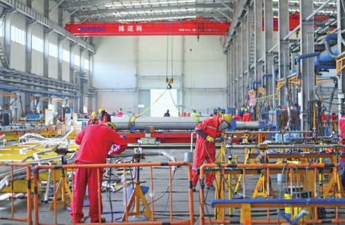 近年来,天津市滨海新区依托京津冀协同发展,推动民营企业主动融入国家重大战略,助推民营企业积极开拓国际国内两个市场,不断优化营商环境,多措并举助力民营经济实现“加速跑”。图为工人在天津博迈科海洋工程股份有限公司不锈钢车间内作业。新华社