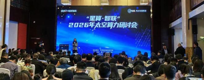 1月26日下午,中国信通院举办了“星算·智联”2026年太空算力研讨会。会议现场座无虚席,过道上也站了很多人。