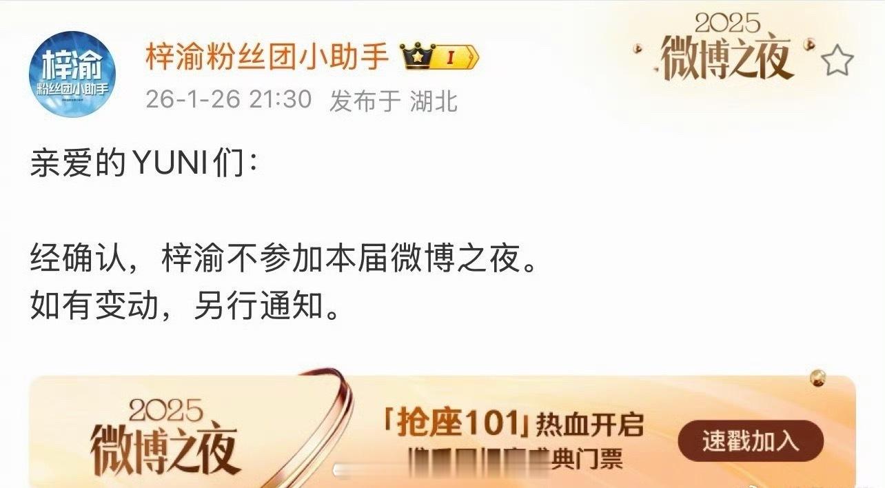 梓渝不参加微博之夜田栩宁也不去了!栩你渝生CP粉再次心碎💔