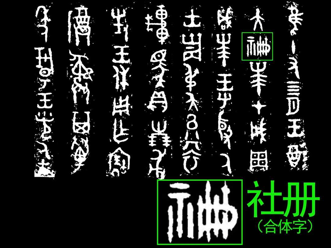 图二,解读社册(合体字),大社册,在国社(帝庙)进行的册封。