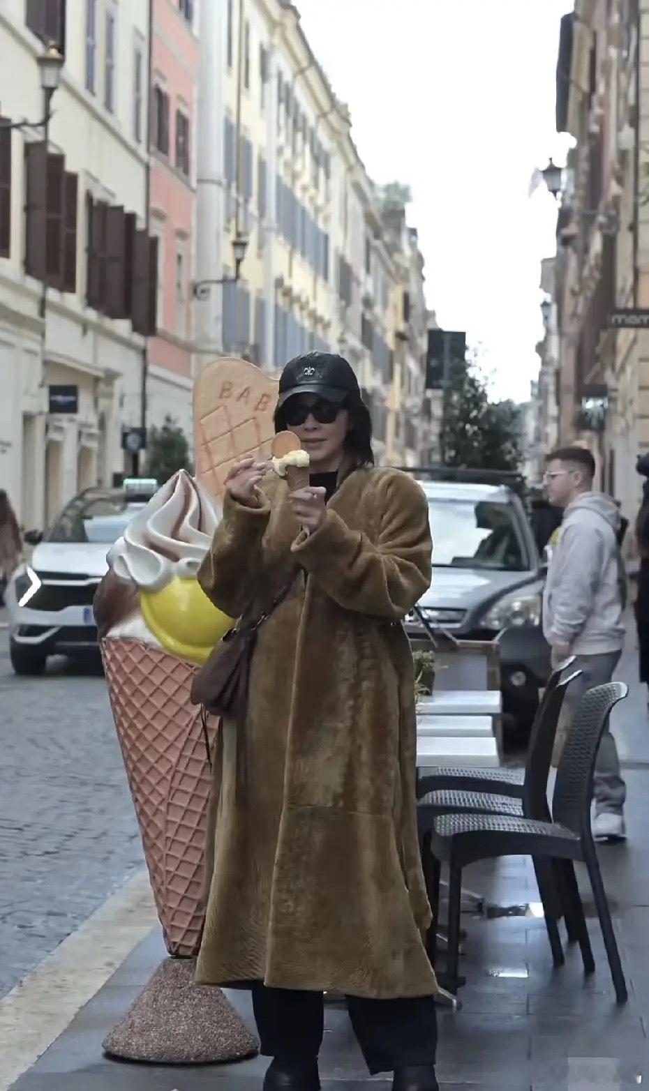 60岁的刘嘉玲去罗马度假了,走在意大利的街头吃着雪糕,让老公梁朝伟拍着美照好惬意