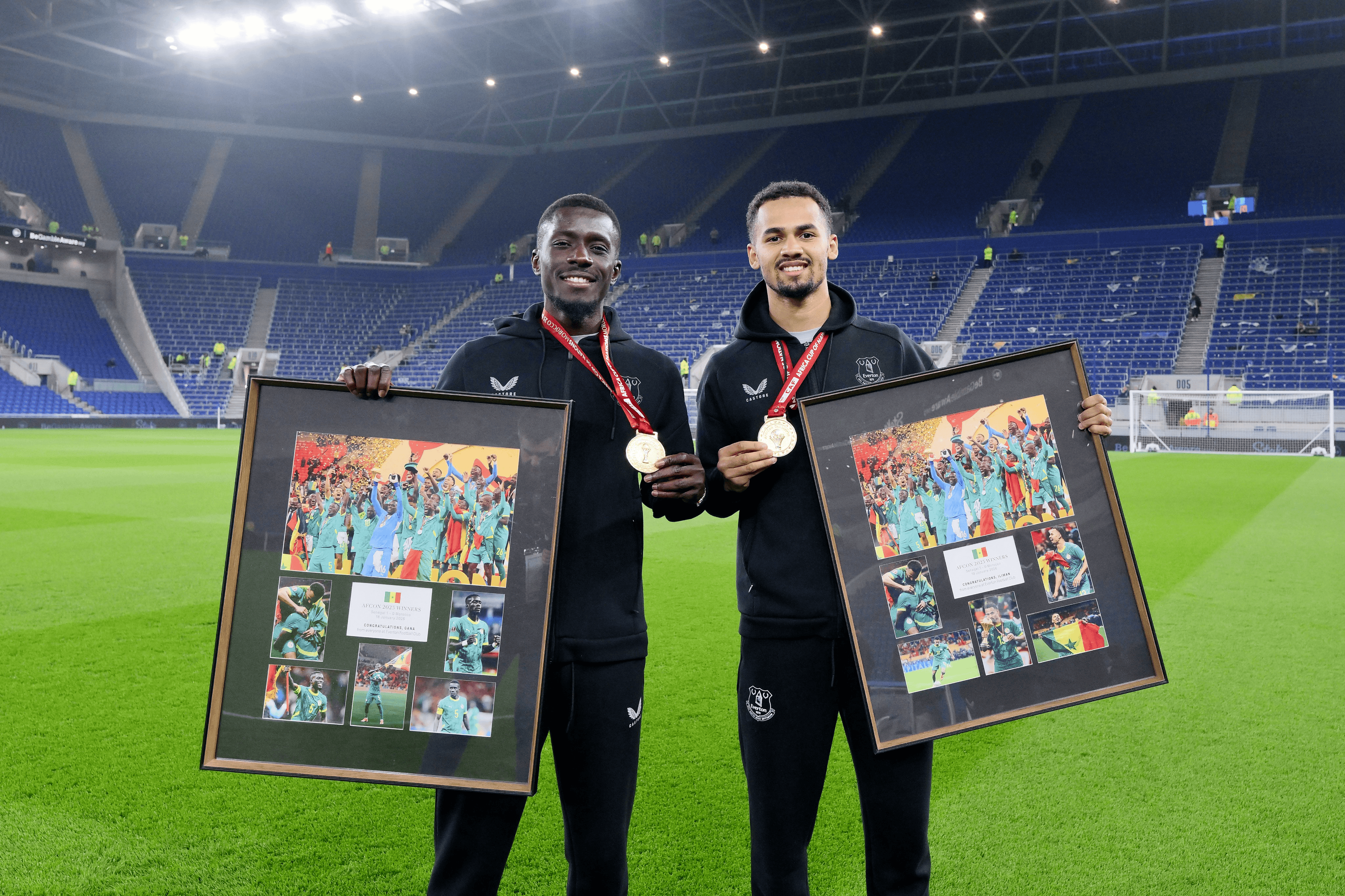 埃弗顿官方为两人制作了塞内加尔冠军纪念相框,相框中包含塞内加尔队本届非洲杯的多个重要镜头。